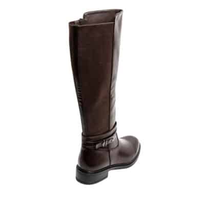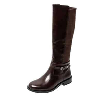 Amour lang støvle til dame i mørkebrun. Stilfuld mørkebrun støvle med langt skaft og en dekorativ spænde, der giver et tidløst og feminint udtryk. Lynlåsen på indersiden og elastikken bagpå gør modellen både praktisk og behagelig at bruge. Indvendigt mødes du af en blød indersål, som sikrer komfort hele dagen, mens den lille blokhæl giver støvlen et flot og sofistikeret løft..