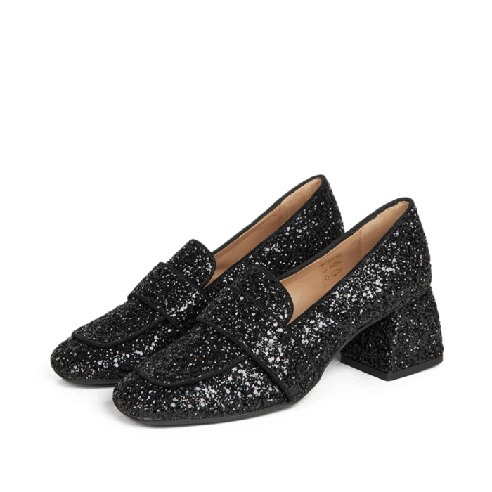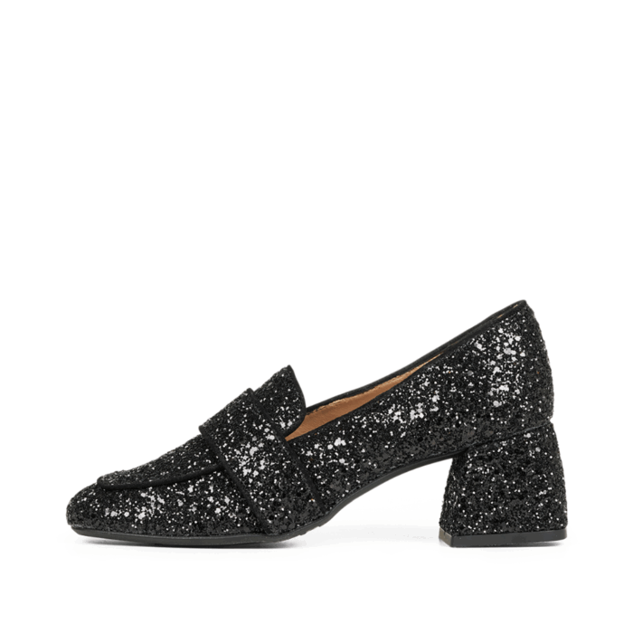 Angulus pumps i sort glimmer til dame 1647-101-8135. Smuk pumps fra Angulus i den fineste sorte glimmer farve med flotte detaljer. Modellen har en hælhøjde på ca. 5-6 cm. Skoens dejlige kvalitetsmaterialer i skind sikrer dine fødder god komfort. Her får du en sko, der bestemt sætter prikken over i’et på dit outfit og på samme tid er behagelig at have på.