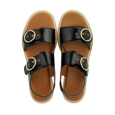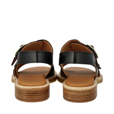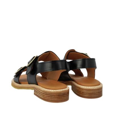 Angulus sandal til dame i sort. Tidløs og moderne sandal i en smuk sort farve med sofistikerede detaljer. Lavet i 100% skind, kombinerer sandalen luksus med funktionalitet. De to justerbare remme med gyldne spænder tilfører et eksklusivt udtryk, mens den bløde skindindersål sikrer en behagelig pasform dagen lang. Hælen på ca. 3 cm giver et elegant løft, mens ydersålen i rågummi garanterer stabilitet og skridsikkerhed for optimal komfort.