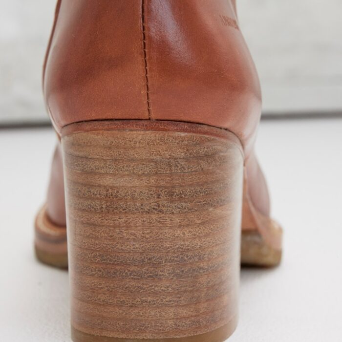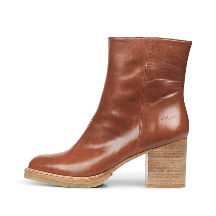 Angulus støvle til dame i cognac. Denne smukke støvle i en moderne cognac nuance er lavet af 100% skind. Designet er minimalistisk og elegant, med fokus på rene linjer og få detaljer. Støvlens detaljer omfatter et diskret Angulus logo ved hælen samt markante syninger, der giver et stilfuldt look. Med sin plateausål og en blokhæl på ca. 7 cm får du et både komfortabelt og elegant løft. Ydersålen i rågummi sikrer høj kvalitet og forbedret skridsikkerhed.