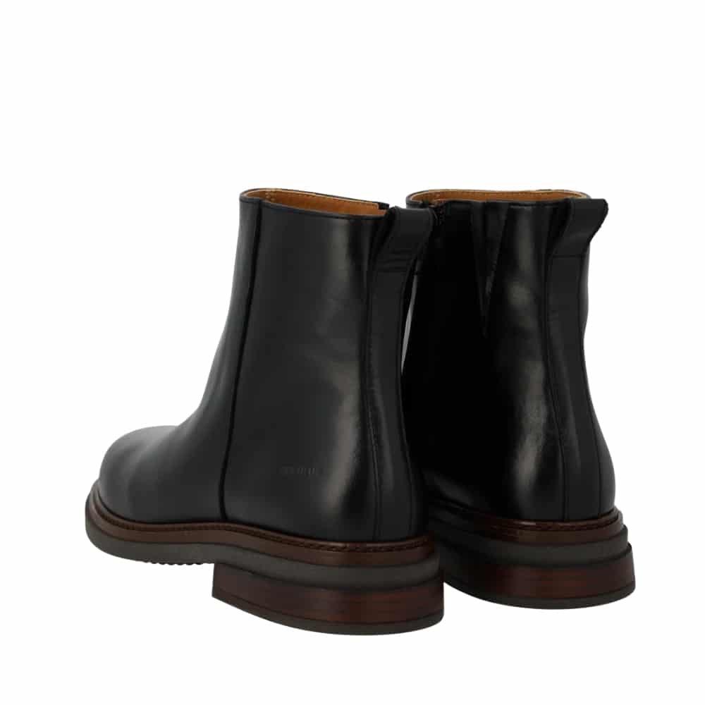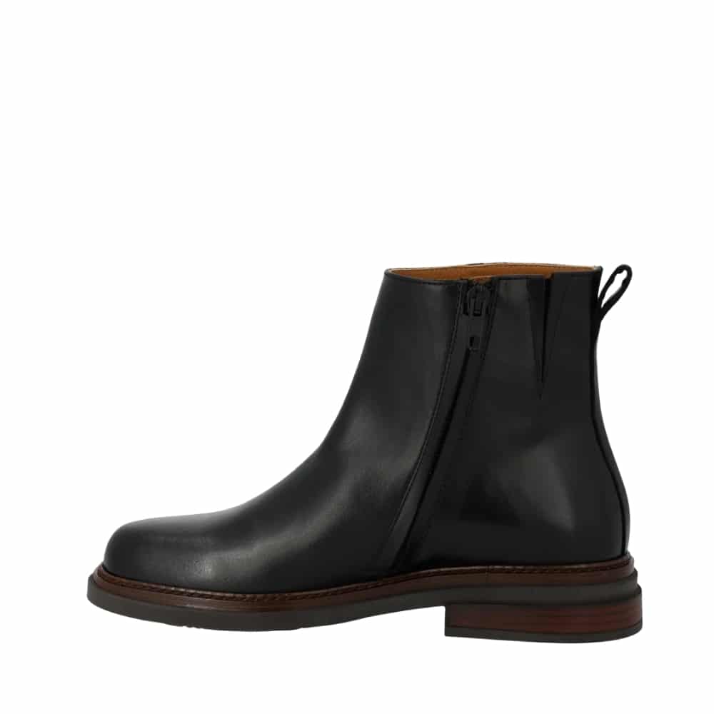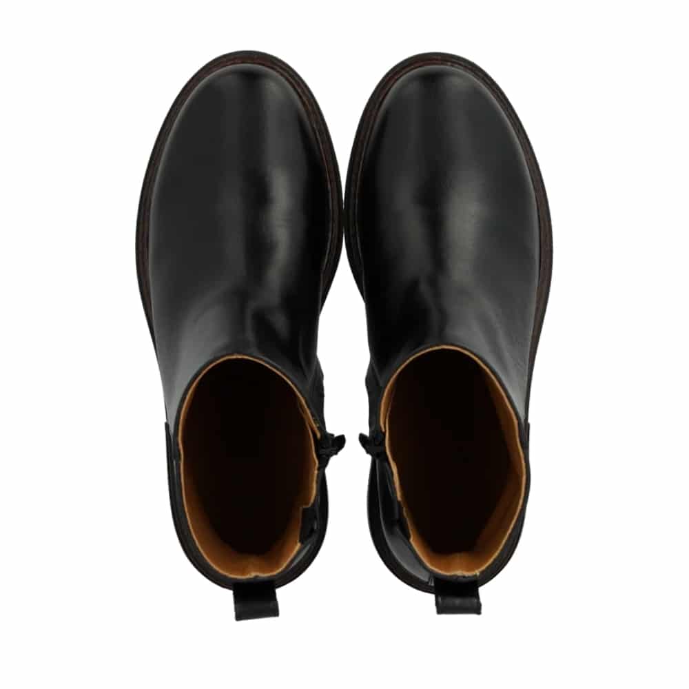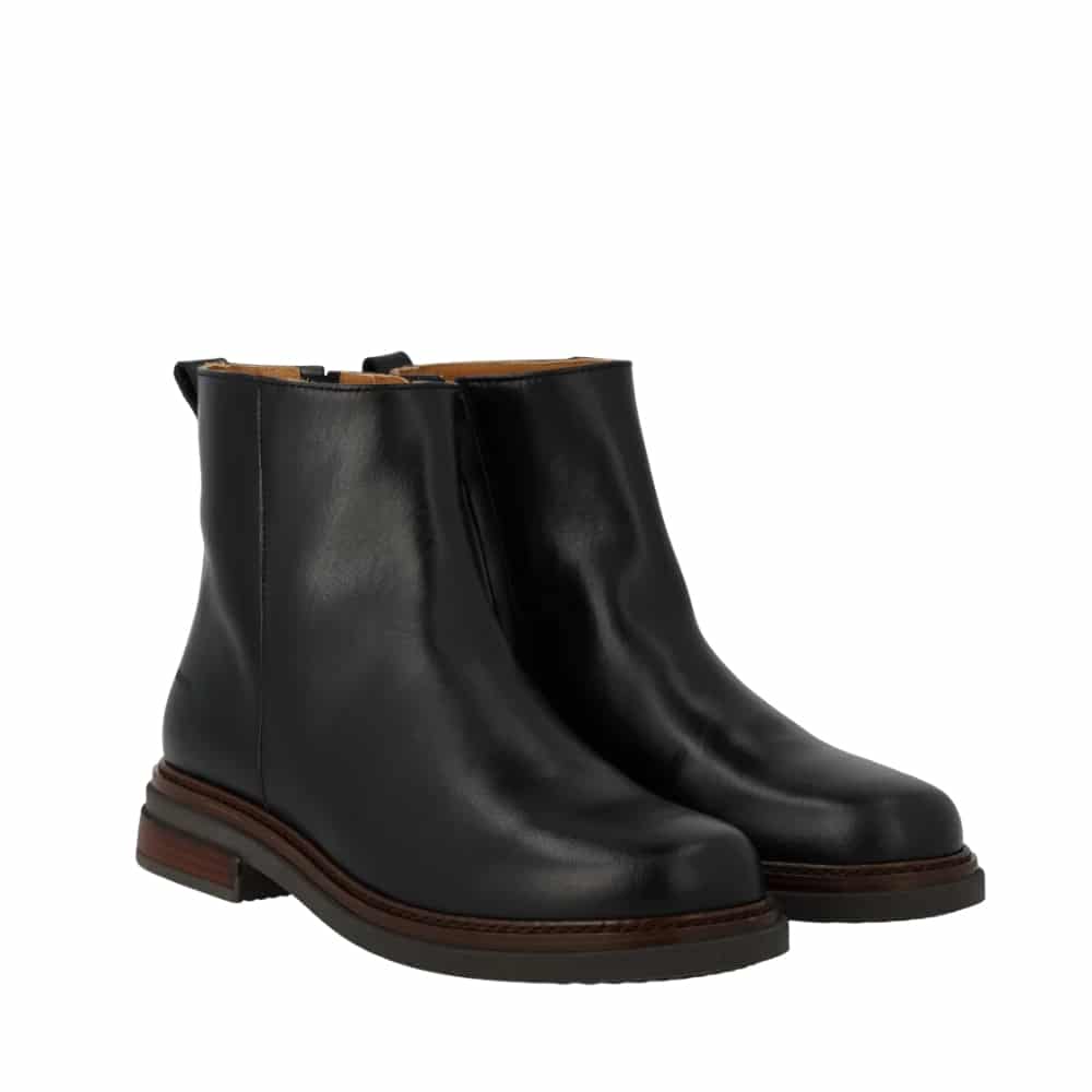 Angulus støvle til dame i sort. Flot og tidløs herrestøvle i skind, ideel til både hverdag og festlige lejligheder. Støvlen har en lynlås på indersiden, som gør det let at komme i og af støvlen, mens den bløde skindsål indvendigt sikrer høj komfort hele dagen. Ydersålen med mønster giver øget skridsikkerhed.