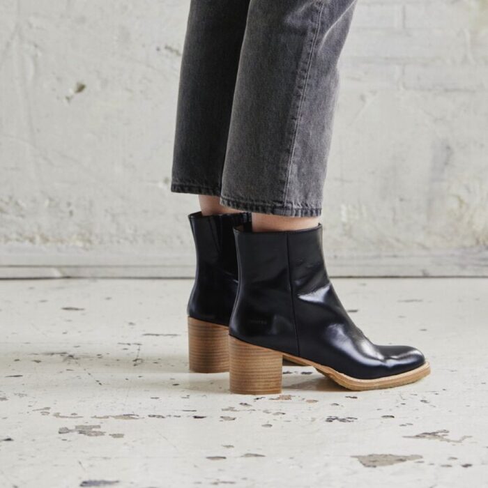 Angulus Støvle i Sort til Dame. Lækker skind støvle fra angulus, i et mega fedt design. Modellen har et klassisk sort glat skind look, samt en hæl som måler 7 cm i højden. Modellen er almindelig i størrelsen, og har en god pasform.