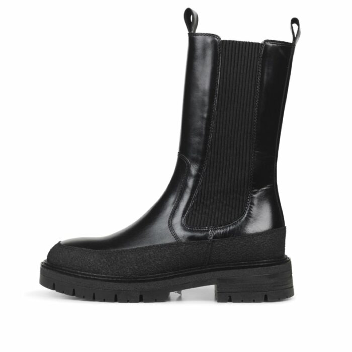 Angulus Støvle i Sort til Dame. Super smart støvle, med fede detaljer. Modellen er i en lækker skindkvalitet. Modellen har lynlås på indersiden og elastik på ydersiden.