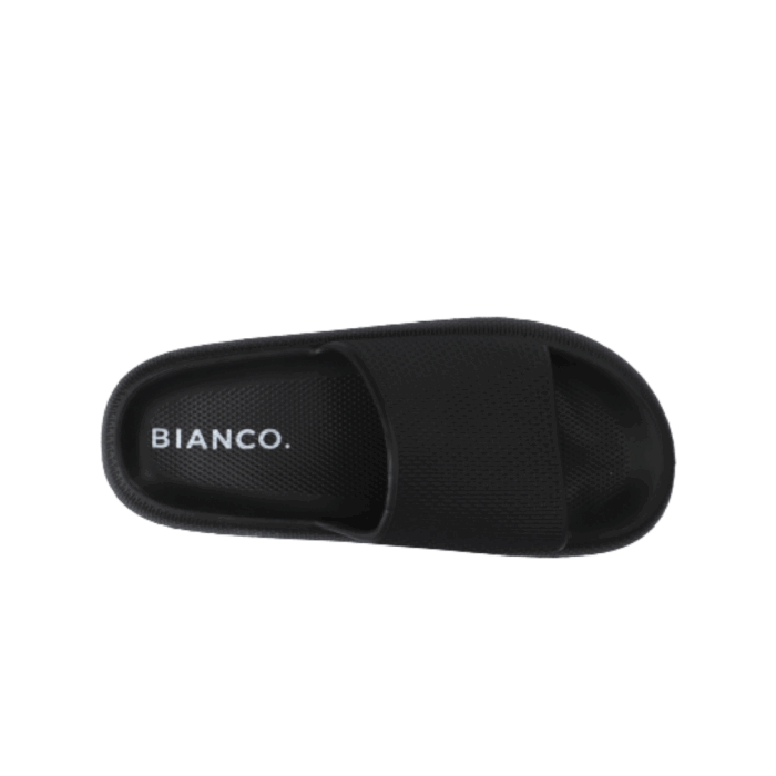 Bianco Slippers i Sort til Dame. Lækker slippers/sandal fra Bianco i en flot sort farve. Modellen har en god pasform og er dejlig blød, så man kan holde til at have den på i lang tid. Sandalen har slip-in funktion, der gør det nemt at komme i/af den. Modellen er almindelig i størrelsen. Perfekt til at tage med på ferie i poolkanten og på stranden.