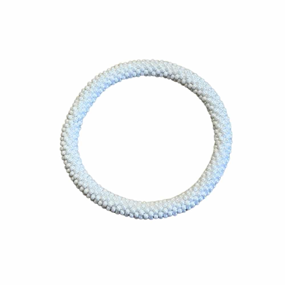 By Stær nepal armbånd i hvid til dame. Opgrader garderoben med dette håndlavede Nepal armbånd fra By Stær. Armbåndet er fremstillet af små, fine glasperler og broderet med bomuldsgarn, hvilket giver et unikt og feminint udtryk. Denne variant kommer i ren hvid farve. Brug det alene for et enkelt udtryk eller miks det med flere for et mere personligt og farverigt look. Armbåndet er onesize og designet til at rulles over hånden. Indvendig omkreds: ca. 17-18 cm