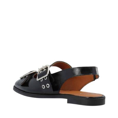 Cashott Casdiana Mary Jane ballerinasko til dame i sort. Denne ballerinasko er den perfekte kombination af elegance og komfort. Denne stilfulde sko er fremstillet af 100% blødt patent læder, der sikrer en behagelig pasform hele dagen. Den blanke lakoverflade og de trendy sølvspænder giver et moderne og råt udtryk, der passer til ethvert outfit. Skoen har en gummisål med en diskret 1,5 cm hæl, som giver let støtte uden at gå på kompromis med komforten. Indvendigt sørger en åndbar og miljøvenlig mikroforing for et sundt fodklima. Med sin runde snude og skinnende patentlæder er denne ballerina både stilfuld og praktisk – et must-have til garderoben.
