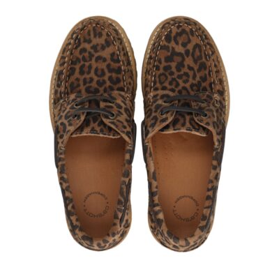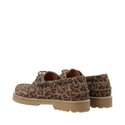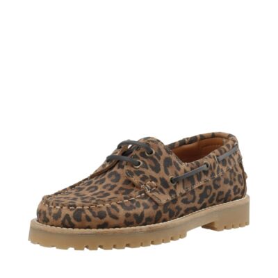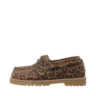 Cashott Caslena sejlersko til dame i leopard. Denne sko kombinerer moderne design med uovertruffen komfort. Fremstillet i ruskind og dekoreret med et flot leopardmønster, giver den et ekstra pift til din stil. Lædersnørebåndene både foran og på siderne gør det muligt at justere pasformen. En blød indersål giver langvarig komfort, mens den robuste gummisål på ca. 3 cm giver både sikkerhed og et elegant touch.