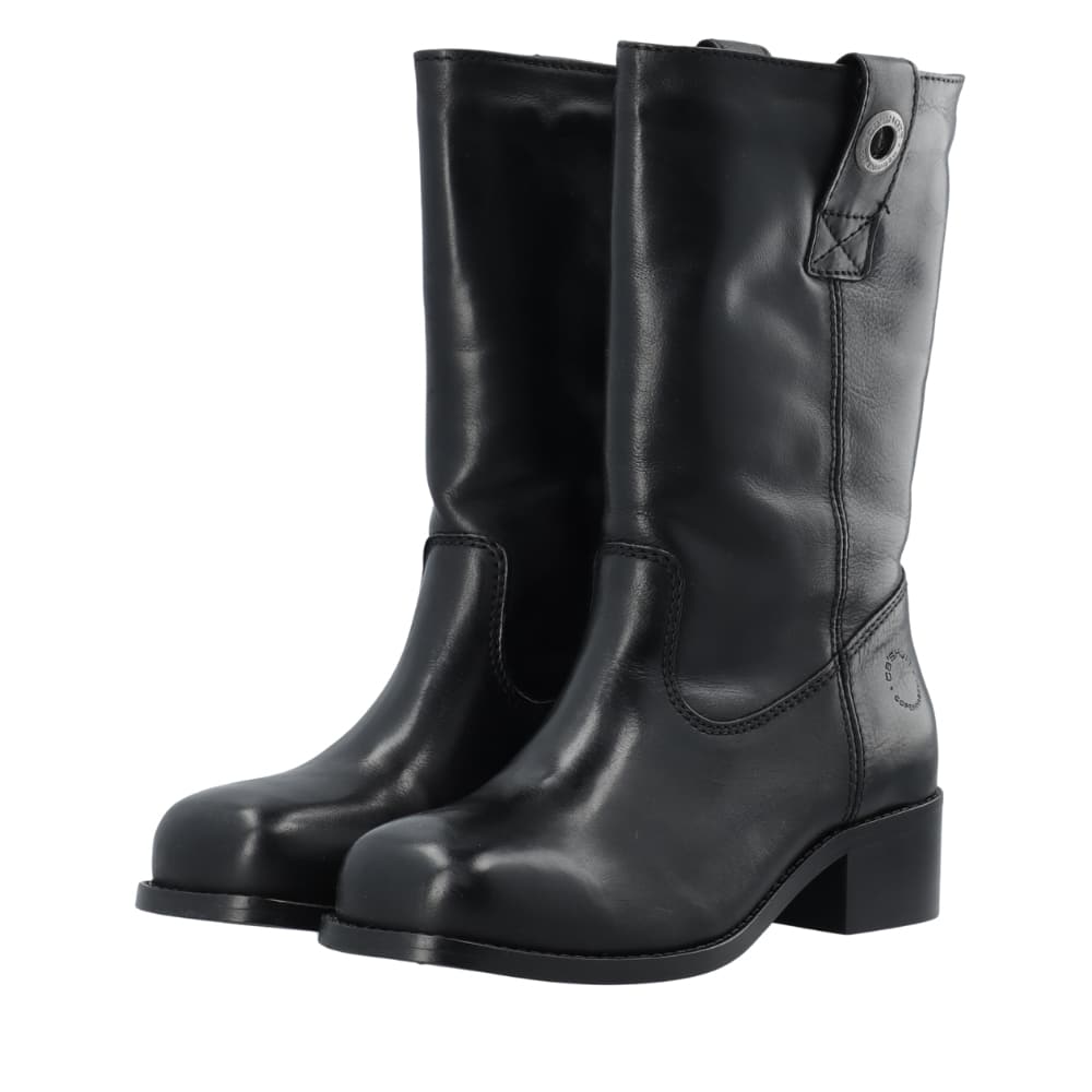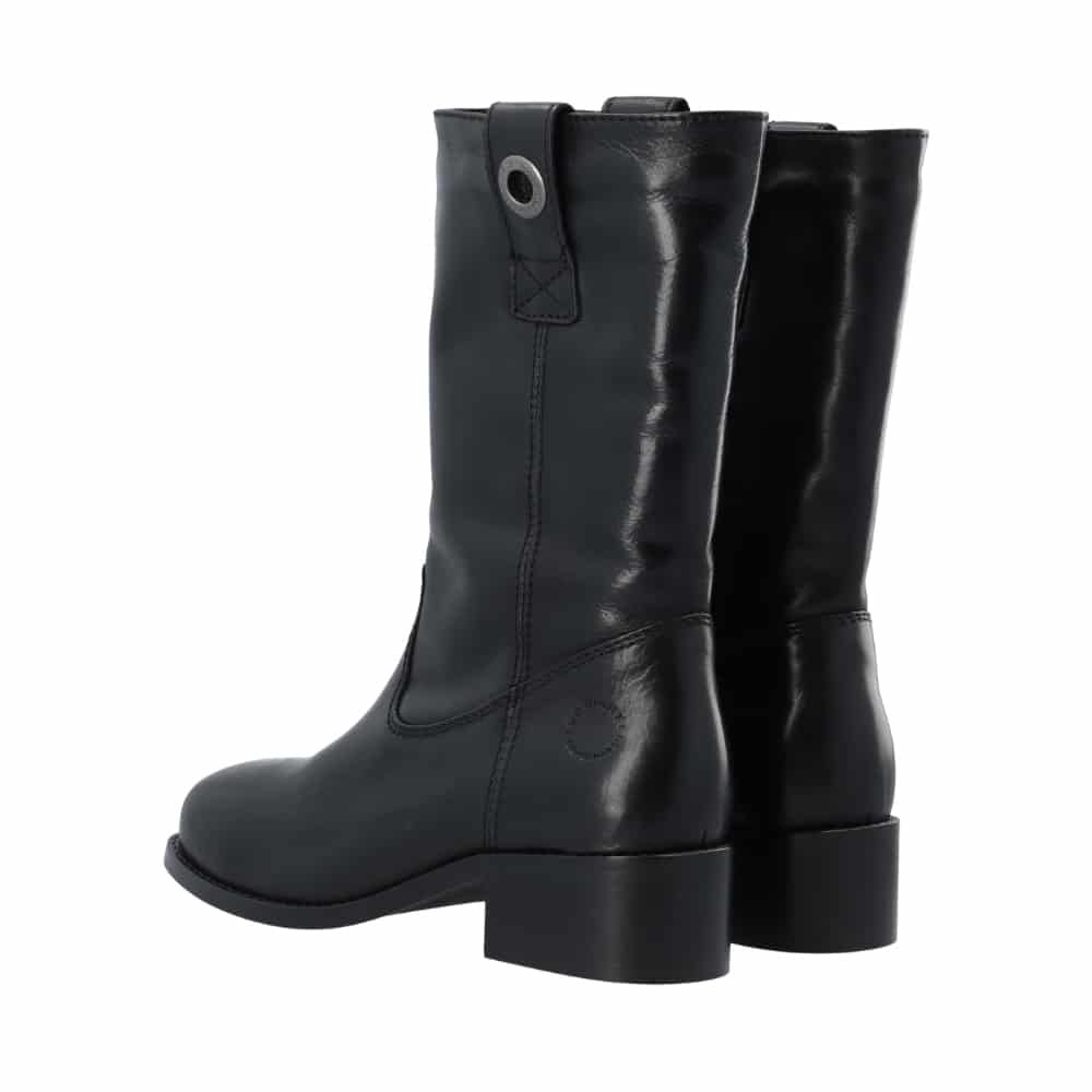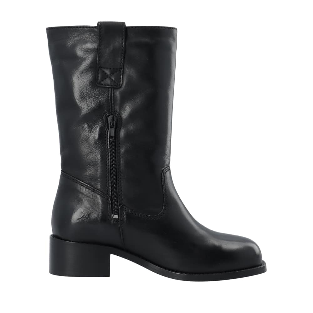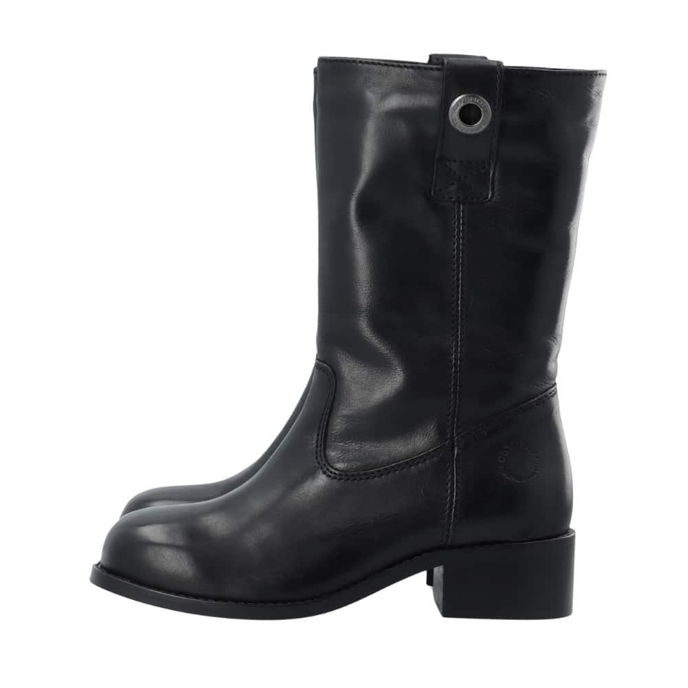 Cashott Casvilma Pull On Mid Cut støvle til dame i sort. Elegant sort støvle med skindoverdel og enkle detaljer, der giver et klassisk look. Støvlen er udstyret med lynlås på indersiden, så den er nem at få af og på. Indvendigt finder du en varm foring og en blød sål, der sikrer komfort hele dagen. Med en blokhæl på omkring 4,5 cm får du et smukt løft, samtidig med at komforten bevares.