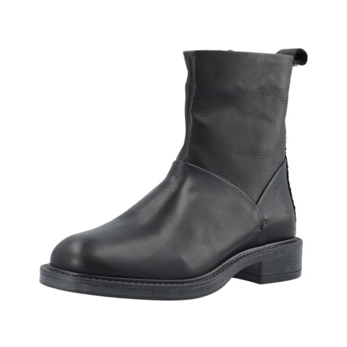 Sort damestøvle fra Cashott med en elegant skindoverdel. Støvlens indvendige er forarbejdet med blødt tekstilfor, der øger komforten. Den praktiske lynlåslukning sikrer nem af- og påtagning af støvlen. Dette eksklusive stykke fodtøj er fremstillet i Portugal.