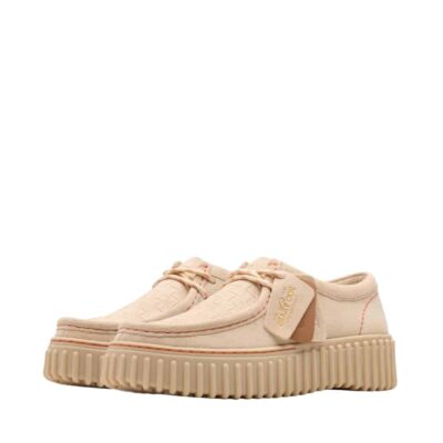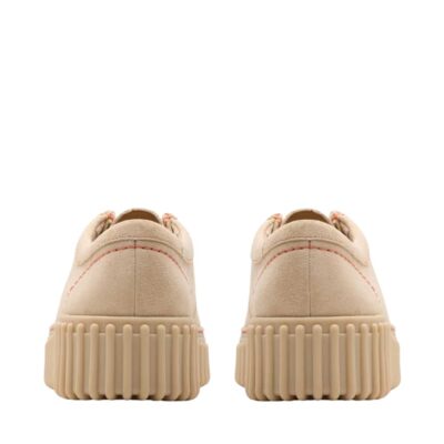 Clarks Torhill Bee sko til dame i beige. Denne sko kombinerer klassisk design og høj kvalitet på bedste vis. Fremstillet af luksuriøst ruskind på ydersiden og glatskind indeni, tilbyder den en behagelig pasform. Den elegante detalje ved forfoden giver skoen et ekstra touch, mens den udtagelige indersål med polstring ved hæl og trædepude giver ekstra komfort. Skoen har justerbare snørebånd for en perfekt pasform og en chunky beige gummisål, der tilføjer et moderne look. Markante syninger og to skinddetaljer med mærket fuldender det stilrene udtryk.