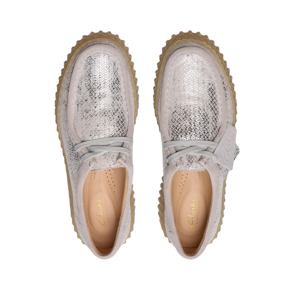 Clarks Torhill Bee damesko i metallisk sølv med skindoverdel og udtagelig sål