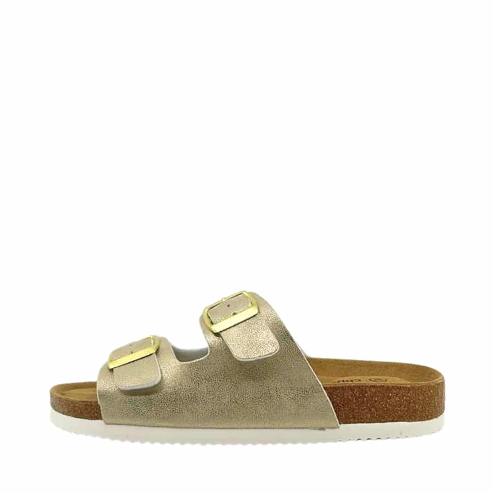 CPH-Comfort Bio sandal til dame i guld. En let og moderne sandal i en flot guldfarve, der passer perfekt til sommerens garderobe. De to spænder sørger for en justerbar pasform, og med slip-in funktion er sandalen nem at tage af og på. Indersålen i blødt ruskind sikrer komfort ved hvert skridt, mens den rillet ydersål bidrager til god støtte og stabilitet hele dagen.