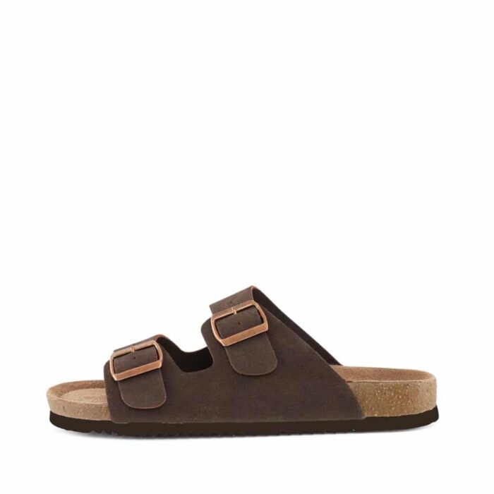 CPH-Comfort Bio sandal i mørkebrun til dame. Den bløde sål sikrer, at du kan nyde langvarig komfort hele dagen. Med to justerbare spænder får du en perfekt pasform, skræddersyet til dine fødder. Sandalens dæksål er luksuriøst polstret og fremstillet af blødt ruskind, mens overdelen er lavet af holdbart syntetisk materiale. Forkæl dine fødder med den ideelle kombination af stil og komfort!