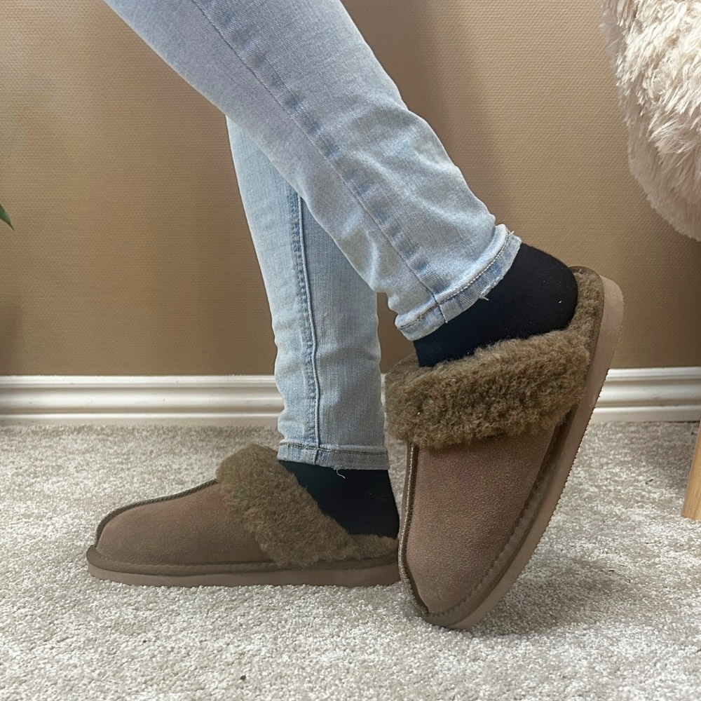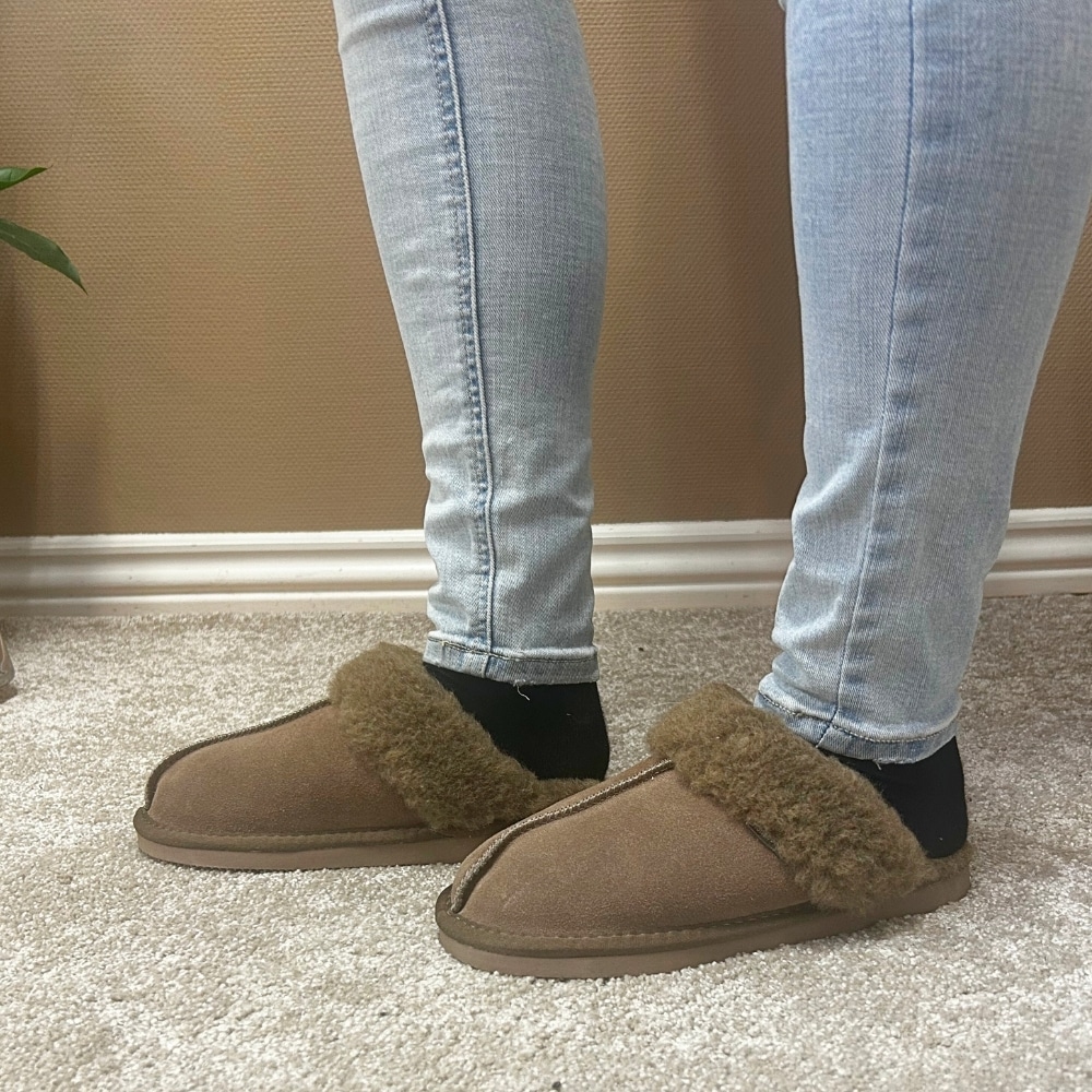 CPH-Comfort Slip Wool hjemmesko til dame i mørkebrun. Flotte hjemmesko i et tidløst design og med en blød ruskindsoverdel, hvor komforten er i fokus. Den varme foring sørger for, at dine fødder holdes lune, og den åbne hæl gør dem nemme at glide i. Den lette og stødabsorberende sål giver både støtte og behagelig komfort hele dagen.