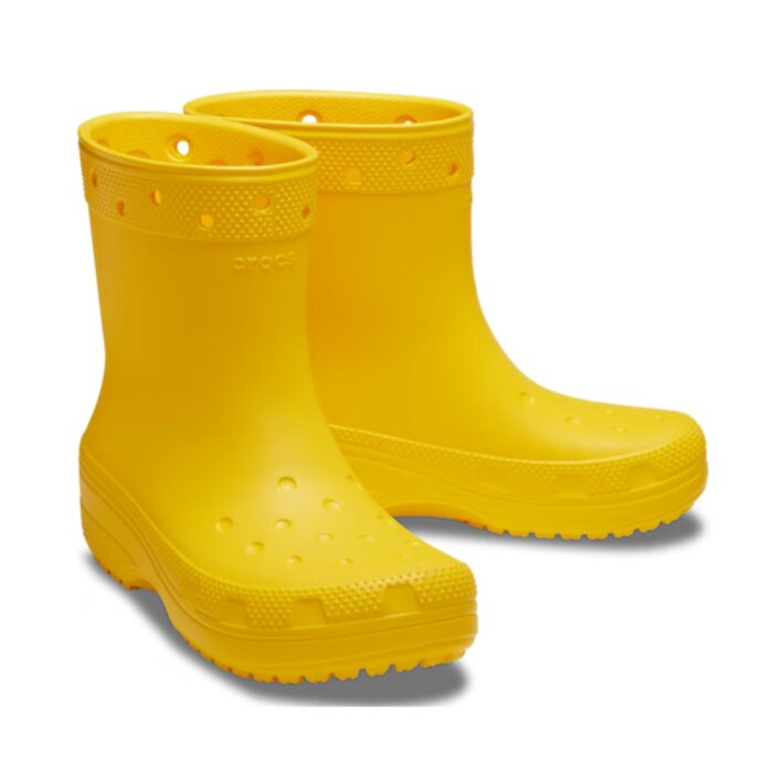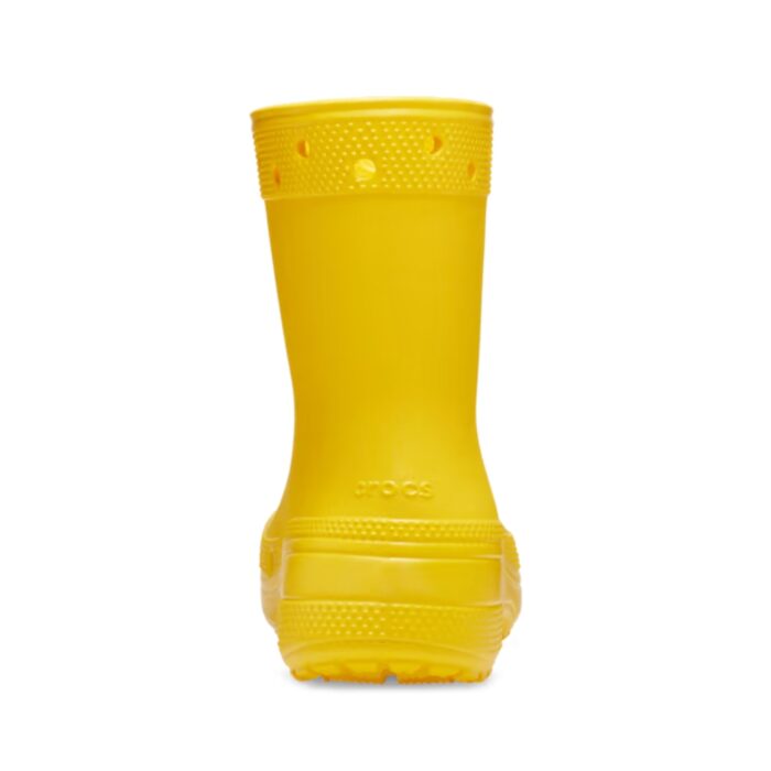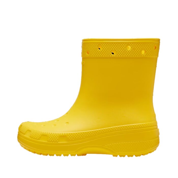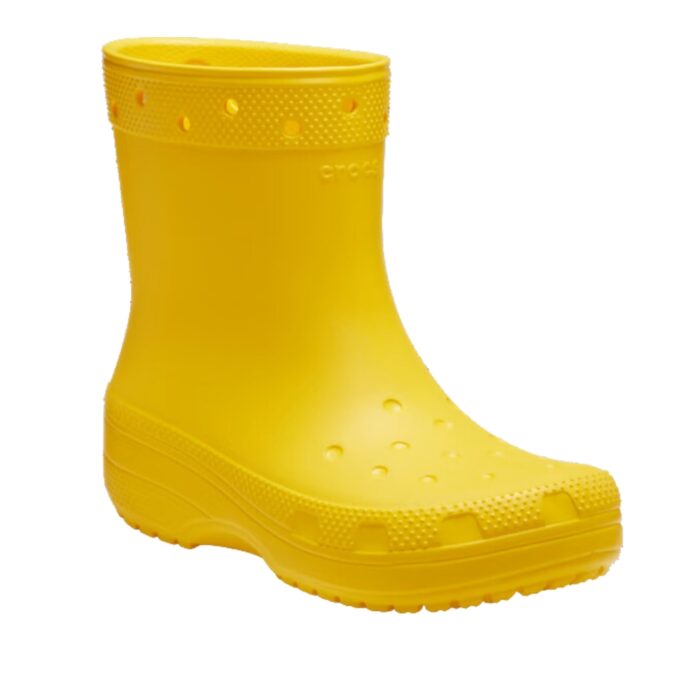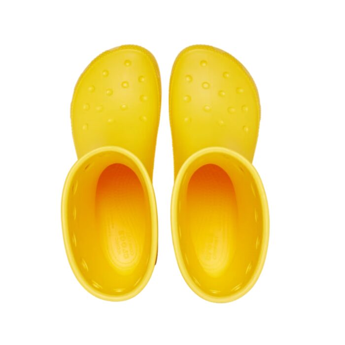 En behagelig og let gummistøvle i gul farve til kvinder, fremstillet af Crocs. Støvlen udstråler den velkendte Crocs-stil, der er kendt for komfort. Med en hælhøjde på 5 cm og en skridsikker sål, giver støvlen stabilitet og forhindrer glidning. De faste indersåler, der er indlejret i støvlen, tilpasser sig foden og sikrer en god pasform.