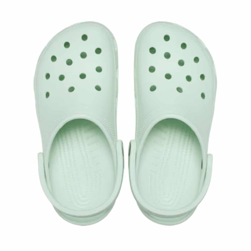 Crocs sandal til dame i mint grøn. Originale Crocs i en smuk mint grøn farve med klassiske detaljer. De velkendte huller på overdelen sikrer god åndbarhed, så dine fødder kan få luft hele dagen. Sandalen er lavet i Crocs’ lette og bløde materialer, og den justerbare rem bagpå gør det nemt at tage dem af og på. En fleksibel og komfortabel model, der er ideel til både sommer og hverdag.