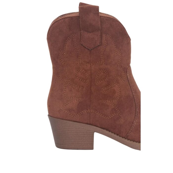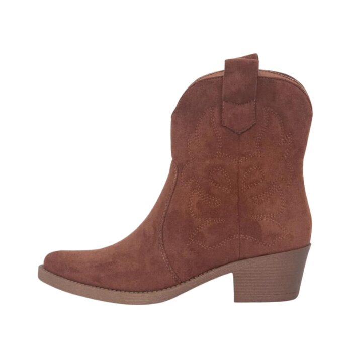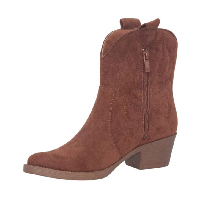 Duffy forfinet cowboystøvle i brun nuance, skabt specielt til kvinder. Disse støvler forener let vægt og komfort med deres faste såler og den praktiske lynlås på indersiden, der sikrer lethed i på- og afklædning. Desuden prydes støvlerne af smagfulde syninger på både ydersiden og indersiden, hvilket tilfører et yderligere strejf af eksklusivitet.