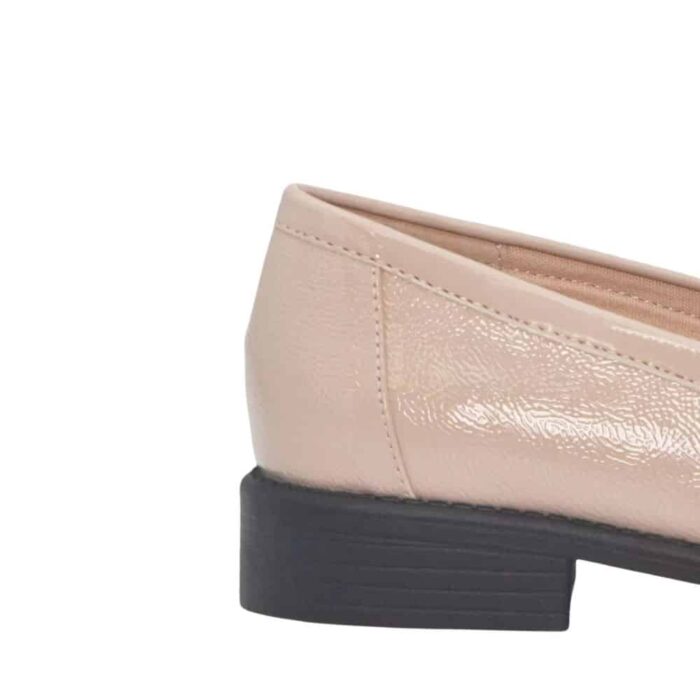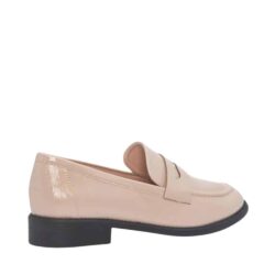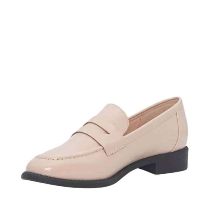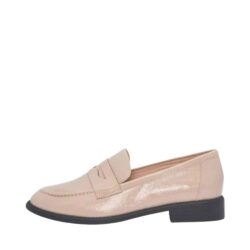 Duffy Francica Uno loafers til dame i beige. Stilfulde loafers med et moderne og unikt design, der skiller sig ud med dens lak look som er lavet af imiteret læder. Den flotte detalje over vristen tilfører skoen ekstra elegance. Med en sort sål og en beige farve skaber skoen en smuk kontrast, hvilket gør den til et perfekt valg. En diskret hæl løfter sålen en smule, hvilket tilføjer yderligere elegance til skoen.