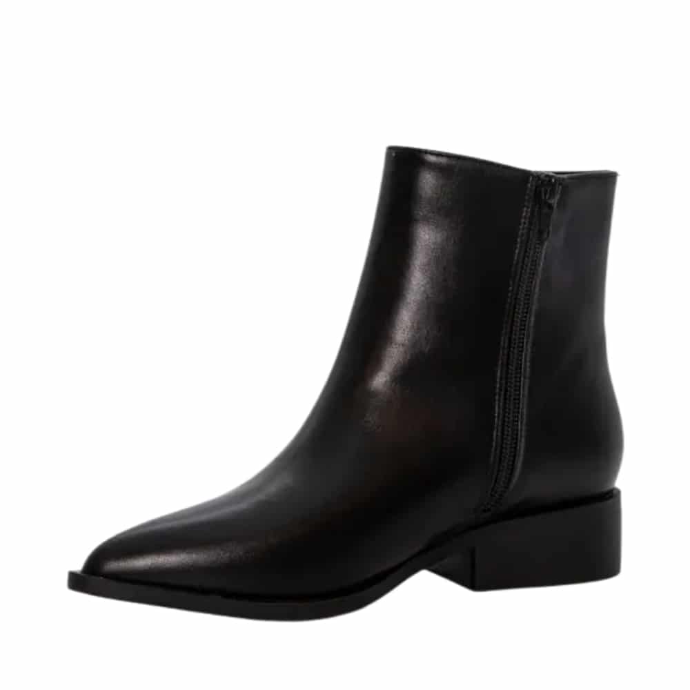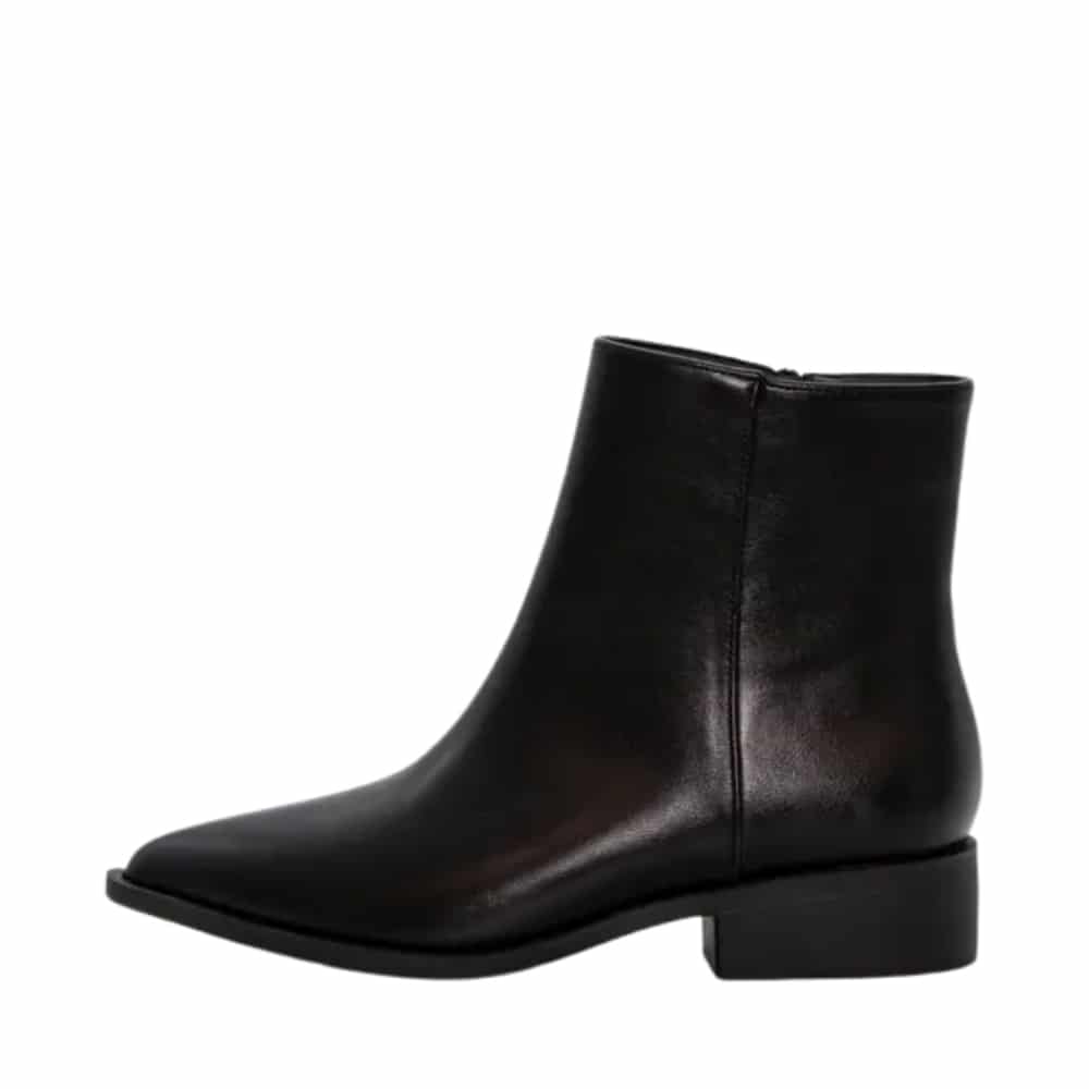 Duffy Fulgatore Nove støvle til dame i sort. En tidløs og klassisk støvle i sort med en spids tå, som giver et elegant og moderne udtryk. Den funktionelle lynlås på indersiden gør det let at komme i og af støvlen. Indvendigt er støvlen udstyret med en blød sål, som giver en god komfort. Den lille hæl på 3 cm løfter looket og giver et elegant løft, den rillet ydersål giver øget skridsikkerhed.
