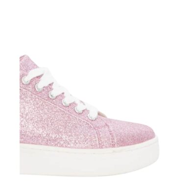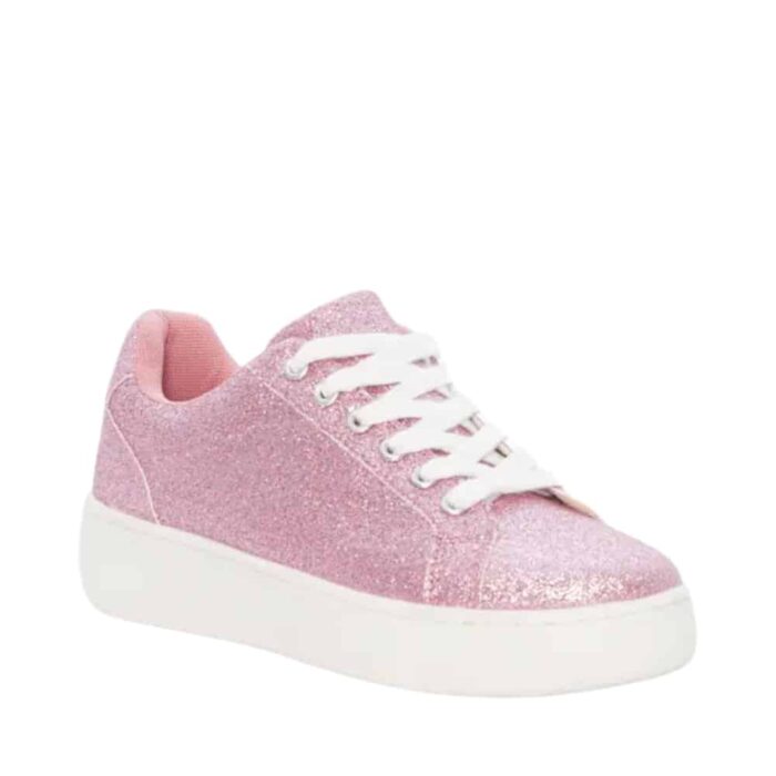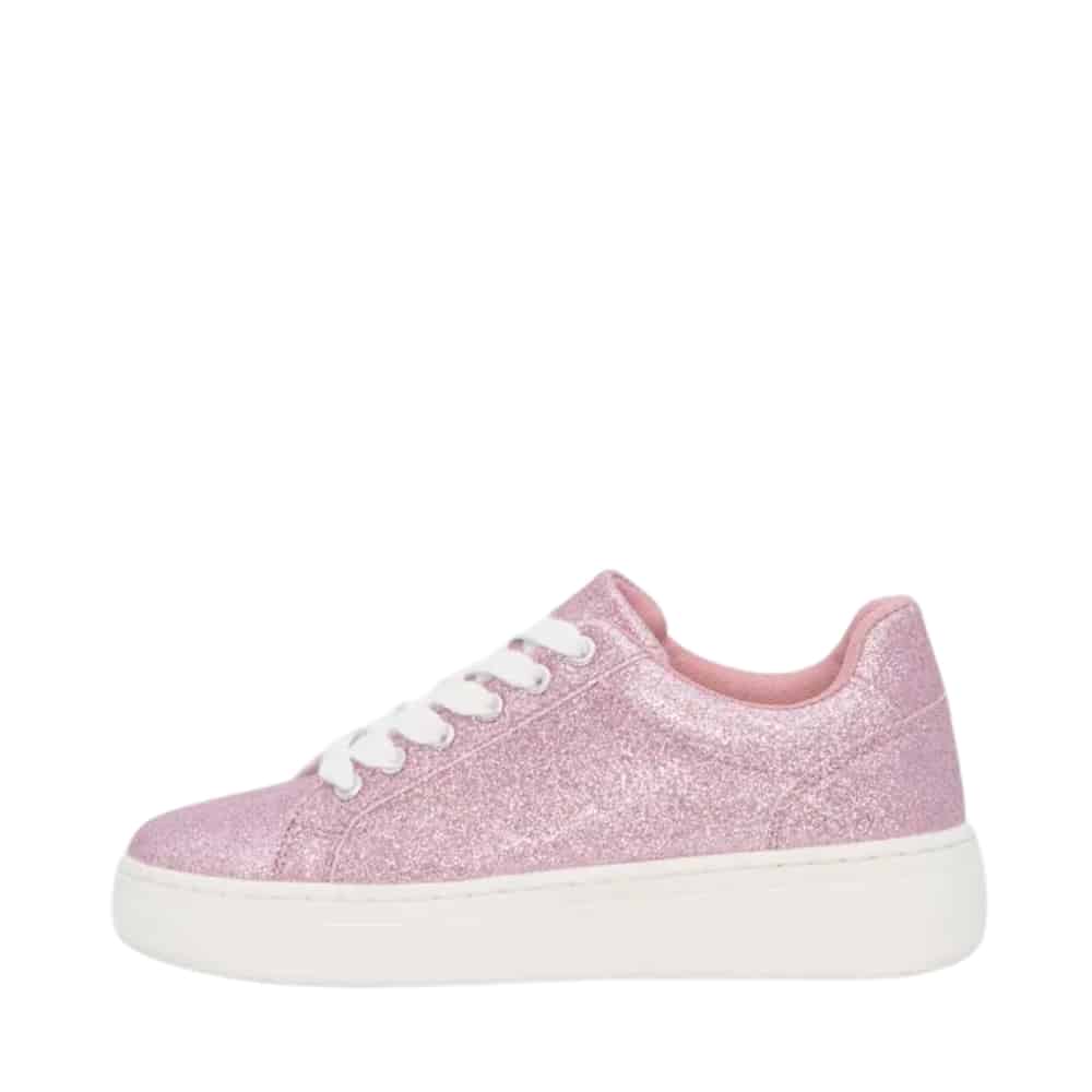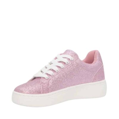 Duffy Genova Dodici sneakers til dame i lyserød glimmer. Er du vild med glimmer? Så er denne sneakers det perfekte valg for dig! Den er udsmykket med en smuk lyserød glimmer, der strækker sig over hele skoen og skaber et fortryllende look. Med snørebånd foran kan du nemt justere pasformen, og den 4 cm høje plateausål giver et elegant løft uden at gå på kompromis med komforten.