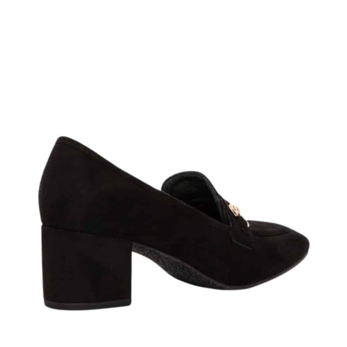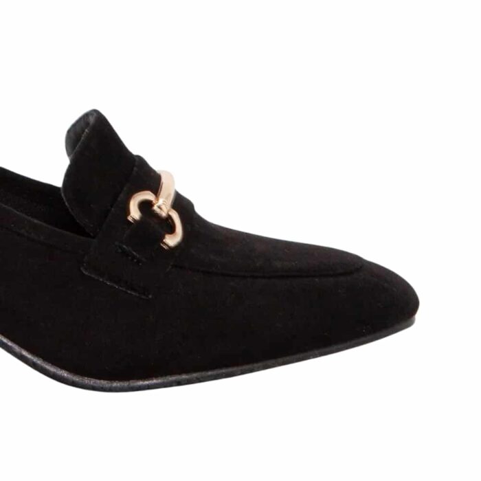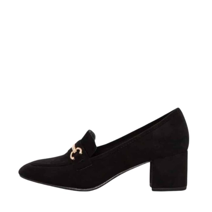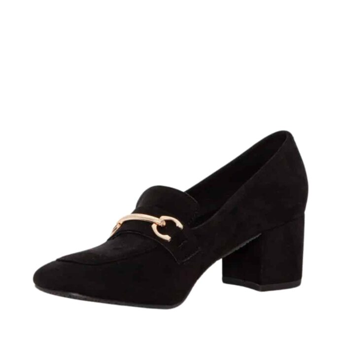 Duffy Giarre Quattro pumps til dame i sort. Stilfuld pump i imiteret ruskind og bløde såler, så du kan holde til at have dem på i lang tid. Modeller er designet med et dekorativt guldspænde, der giver den et elegant udseende. Den 5,5 cm blokhæl er perfekt til både arbejde og mere festlige lejligheder. En trendy og frisk sko, der passer til alle aldre.