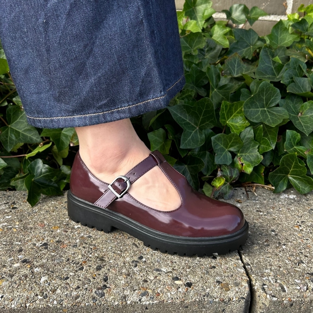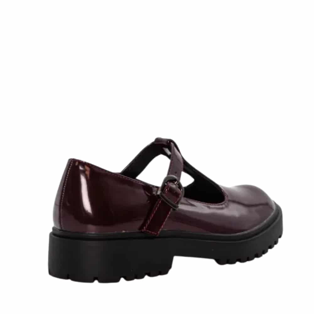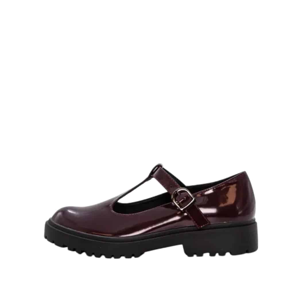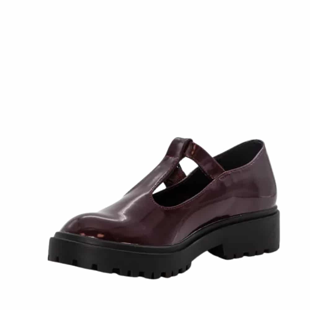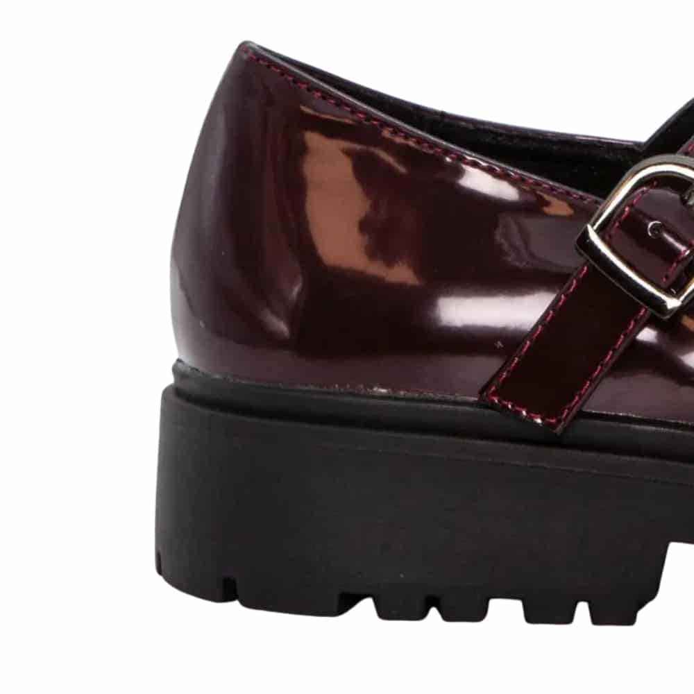 Duffy Lattarico Cinque Mary Jane sko til dame i bordeaux lak. Elegant bordeauxfarvet sko med blank lakoverdel, der tilfører designet et sofistikeret look. Skoen har en rem over vristen med spænde, som giver mulighed for at justere pasformen. Indvendigt sørger en blød sål for behagelig komfort, og den mønstrede ydersål på ca. 4 cm løfter udtrykket med stil og giver samtidig en stabil fornemmelse gennem dagen.
