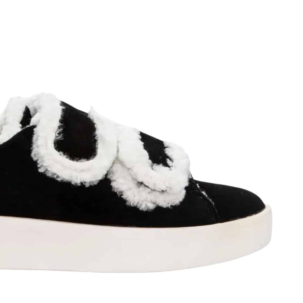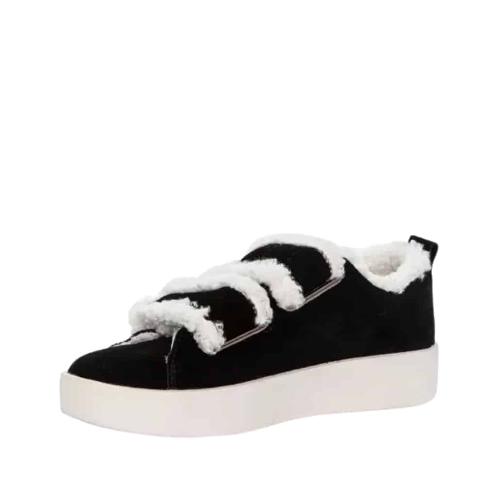 Duffy Leuca Uno sneakers til dame i sort ruskind med to velcroremme og varm foring samt plateausål på 3. cm