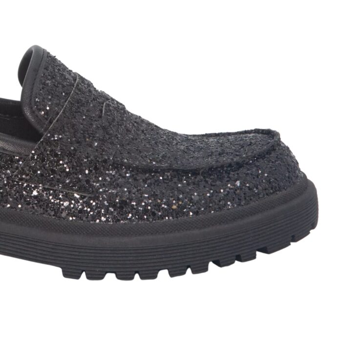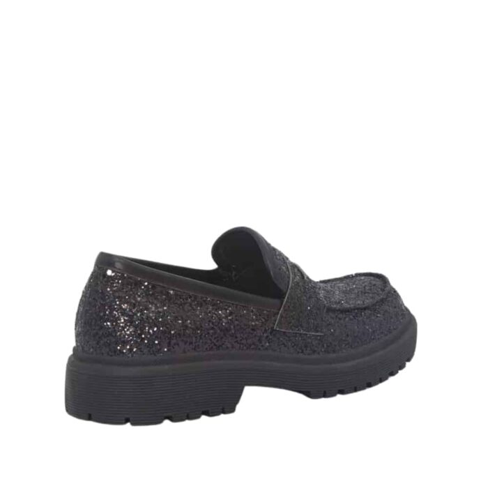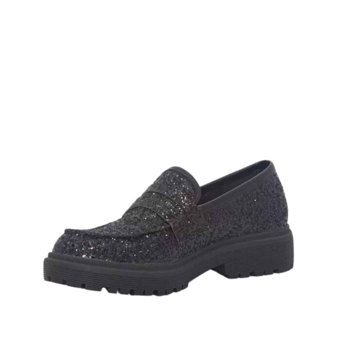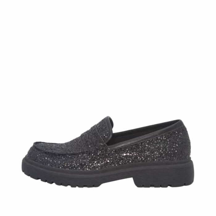 Duffy loafers i sort til dame. Loafers i den flotteste sorte glimmerfarve, med lækre detaljer. Sidder godt på foden og er lige til at smutte i. Den lidt chunky sål giver ekstra komfort.