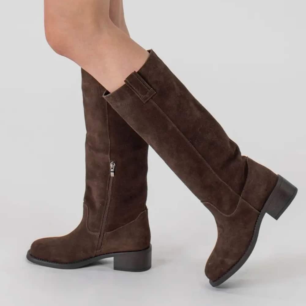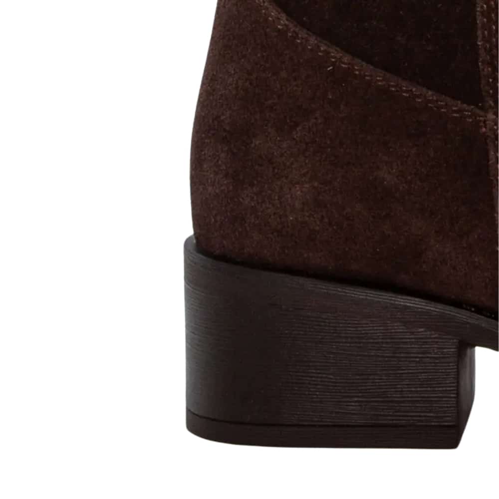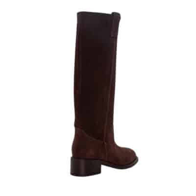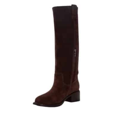 Duffy Mareneve Quattro lang støvle til dame i mørkebrun. Denne elegante mørkebrune støvle kombinerer stil med komfort. Støvlen har en overdel i ruskind og et langt skaft på ca. 38 cm, som tilfører et feminint look. Med lynlåsen på indersiden er støvlen nem at tage af og på, og indvendigt mødes du af en blød indersål, der giver god komfort gennem hele dagen. Den solide blokhæl på ca. 5 cm tilføjer højde og elegance, samtidig med at den er behagelig at gå på.