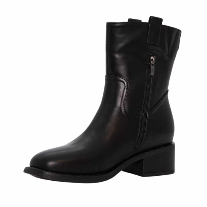 Duffy Mareneve Uno støvle til dame i sort. Oplev den ideelle støvle til dig, der ønsker at kombinere modernitet og stil. Denne støvle, med sit tidløse design og moderne detaljer, bliver hurtigt en uundværlig del af din garderobe. Den 4 cm høje blokhæl giver dig et sofistikeret løft, uden at gå på kompromis med komforten. Den praktiske lynlås på indersiden gør det let at tage støvlen af og på, mens den sorte ydersål med skridsikkert mønster sikrer, at du står stabilt og sikkert, uanset hvor du går.