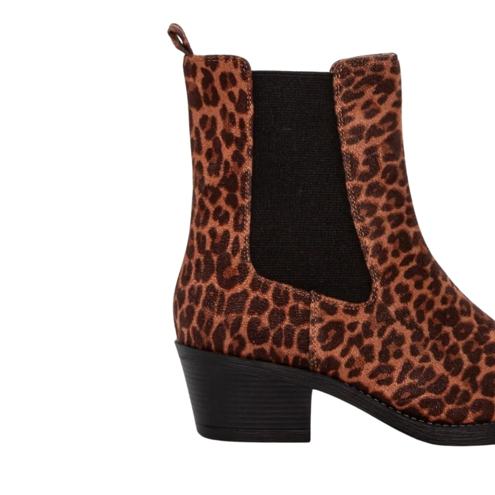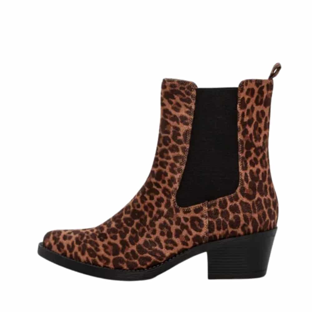 Duffy Messina Undici støvle til dame i leopard med elastik og blokhæl samt spids snude