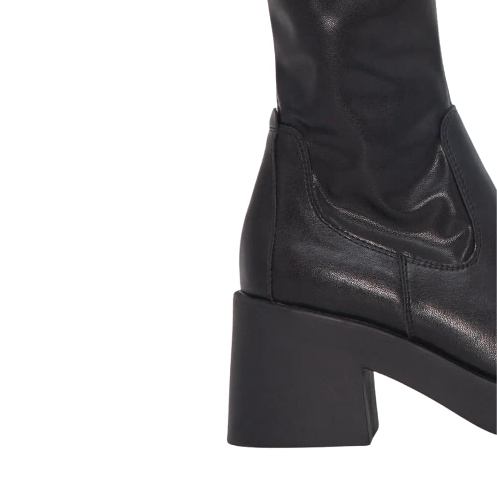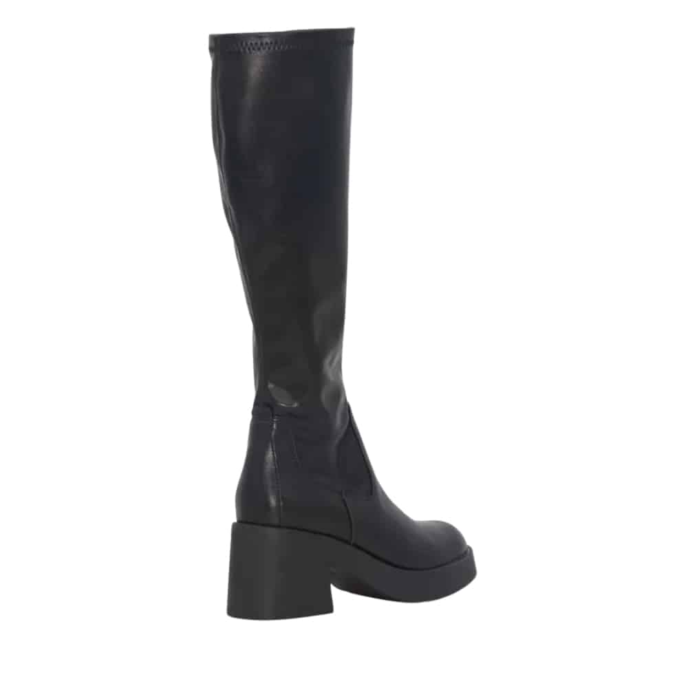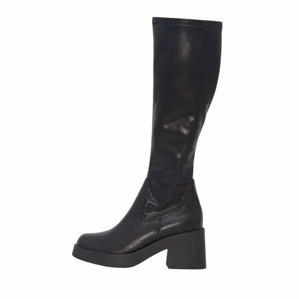 Duffy Pombia Cinque lang støvle til dame i sort. Stilfuld støvle, der tilfører et feminint og moderne udtryk til dit look. Støvlen har en praktisk lynlås, så den er nem at tage på, og indvendigt giver den bløde sål behagelig komfort. Med en hælhøjde på 7 cm og en plateausål får du et flot løft og stabil gang, uden at det går ud over komforten.