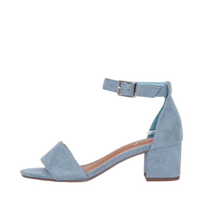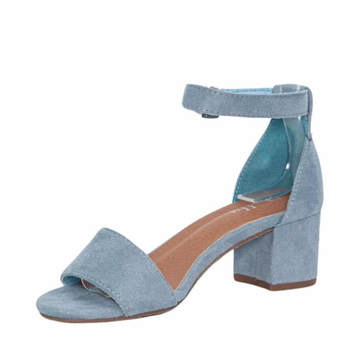 Duffy sandal til dame i lyseblå. En fortryllende og sofistikeret sandal fra Duffy med en bred hæl på ca. 5 cm. Den har en justerbar ankelrem, der kan tilpasses efter dine behov. Denne meget eftertragtede model tilbyder en behagelig og blød pasform, der gør det behageligt at have den på i lang tid. Smukke detaljer og et elegant guldspænde fuldender udseendet.