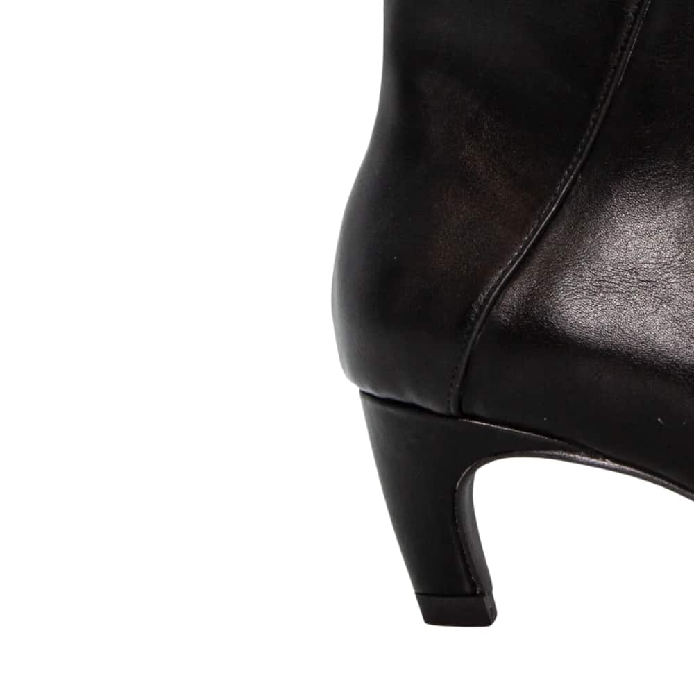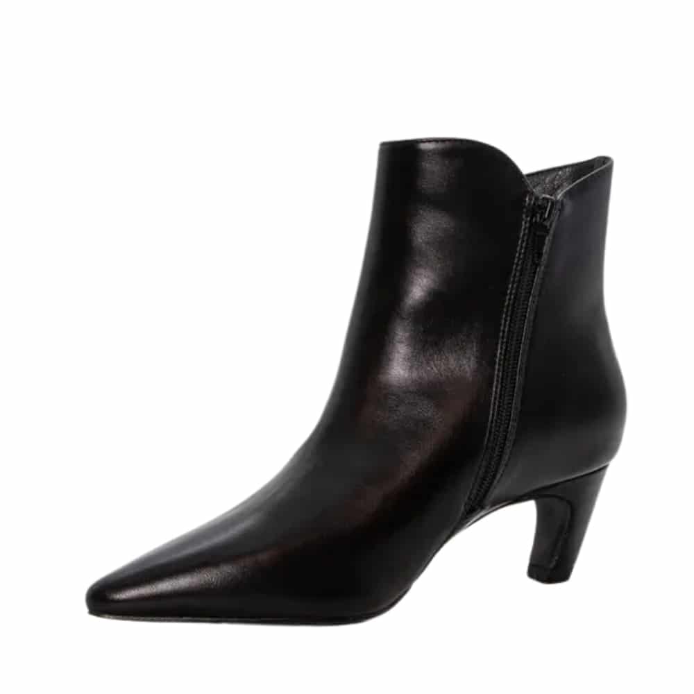 Duffy Solano Uno støvle til dame i sort. Denne sorte støvle er et stilfuldt valg med sit klassiske design og fine detaljer. Den praktiske lynlås på indersiden gør støvlen let at tage på, mens den bløde indersål sørger for komfort ved hvert skridt. Med en stilethæl på ca. 6 cm får du et elegant løft, der fuldender udtrykket uden at gå på kompromis med komforten.