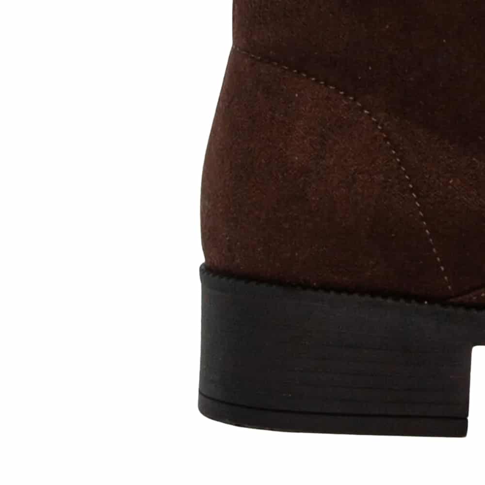 Duffy Tranto Uno lang støvle til dame i brun. Støvlen har et tidløst design med et langt skaft og moderne detaljer. Og støvlen har en praktisk lynlås på indersiden der gør det nemt at tage støvlen af og på. Hælen på 3,5 cm giver et elegant løft, samtidig med at komforten bevares. Ydersålen er sort og mønstret, hvilket øger skridsikkerhed og stabilitet i hverdagen.