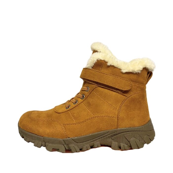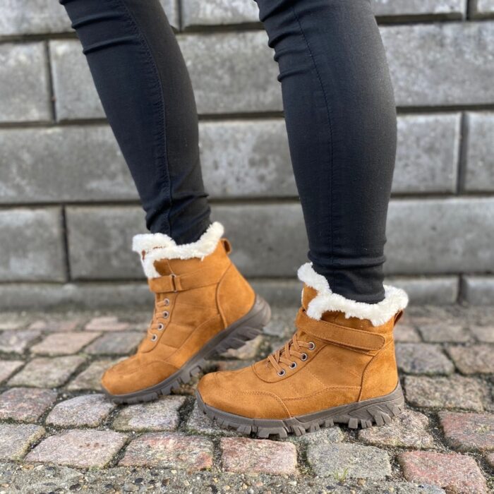 Duffy vinterstøvle til dame i brun. Denne praktiske og komfortable ankelstøvle er det ideelle valg til kolde dage. Den varme foring sørger for, at dine fødder holdes lune, mens det justerbare velcrobånd og de elastiske snørebånd gør støvlen nem at tilpasse og tage af og på. Den robuste, grove sål giver et godt greb på alle underlag, og det tekstile materiale giver støvlen et moderne og stilrent udtryk. Perfekt til både daglig brug og aktive udendørsaktiviteter.