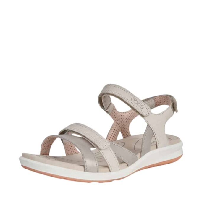 Ecco Cruise II sandal til dame i beige. Gør dig klar til afslapning, vandring eller en dag i byen med stil. Denne lette og fleksible Ecco damesandal tilbyder en behagelig og problemfri oplevelse i en elegant blå farve. Fremstillet med en skindoverdel og tre justerbare velcrolukninger, giver den dig mulighed for at tilpasse den præcis til din fod. Med Receptor Teknologi fremmes den naturlige bevægelse og styring af din fod, fra hæl til forfod. Den ekstra lette og bløde sål sikrer fremragende støddæmpning og komfort hele dagen.
