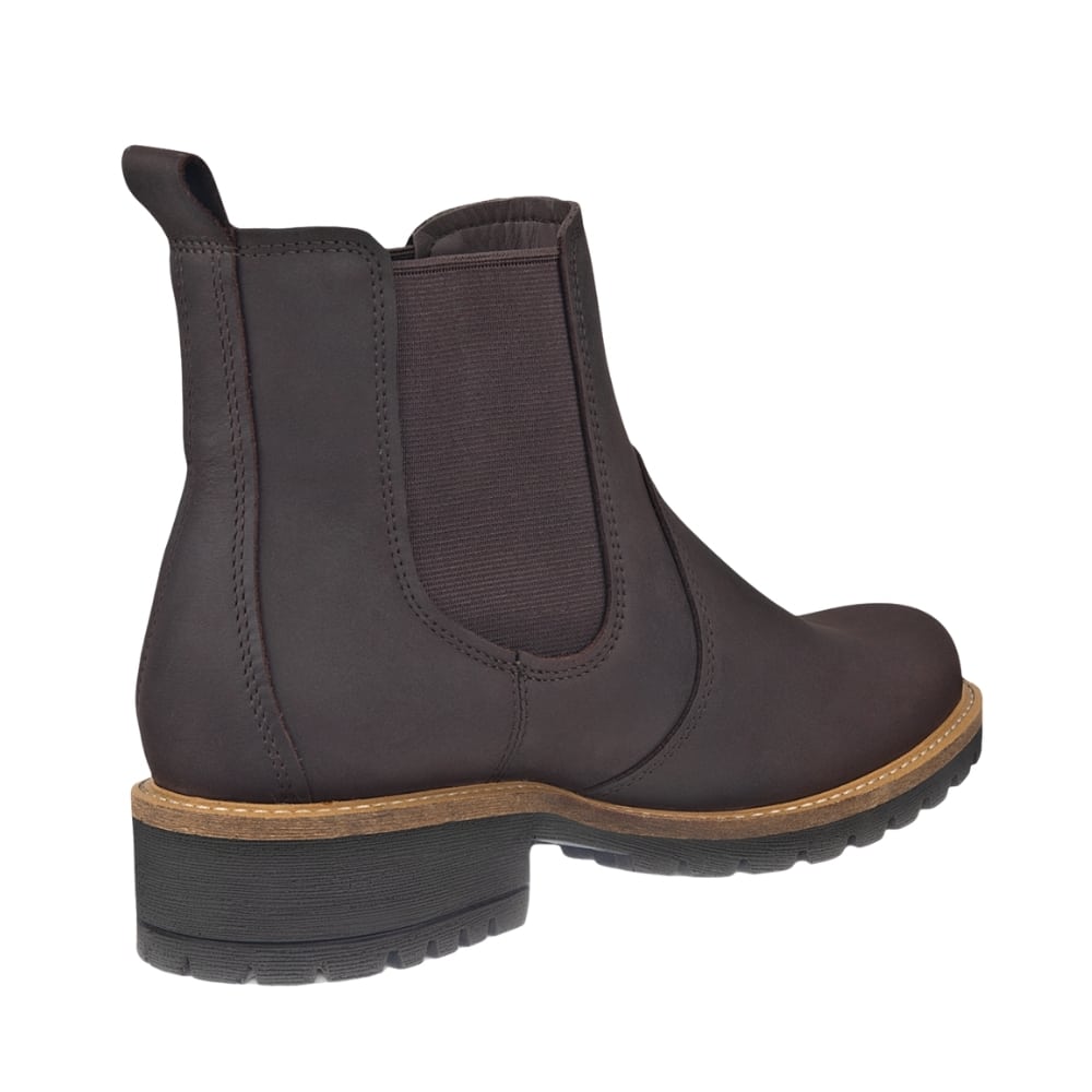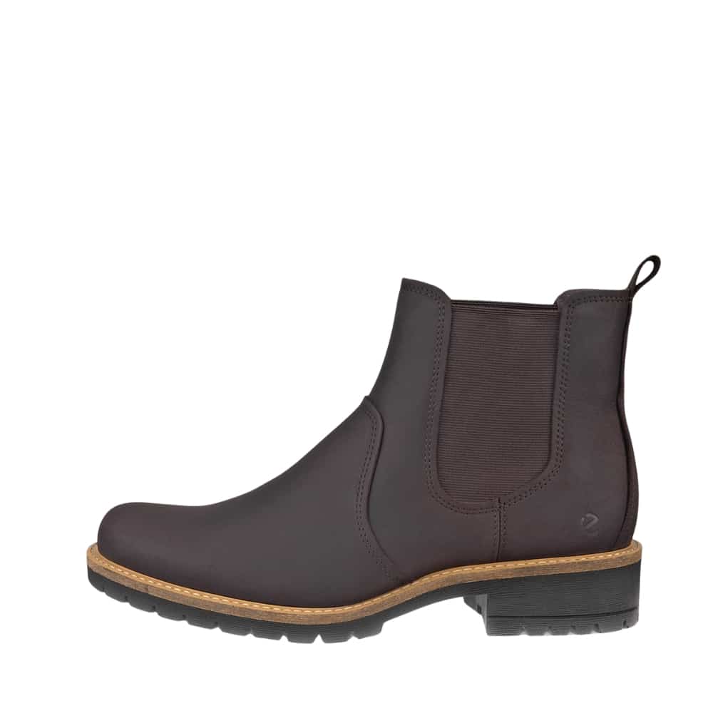 Ecco Elaina støvle til dame i brun. Elegant brun chelseastøvle i nubucklæder med et tidløst design. De to elastikker i siderne giver en fleksibel pasform og gør det let at tage støvlen af og på. Indvendigt finder du en blød, udtagelig indersål, som sikrer høj komfort, mens Ecco Fluidform™ teknologien giver naturlig støtte ved hvert skridt. Den solide ydersål med blokhæl på ca. 4 cm og mønster sikrer stabilitet og øget skridsikkerhed hele dagen.