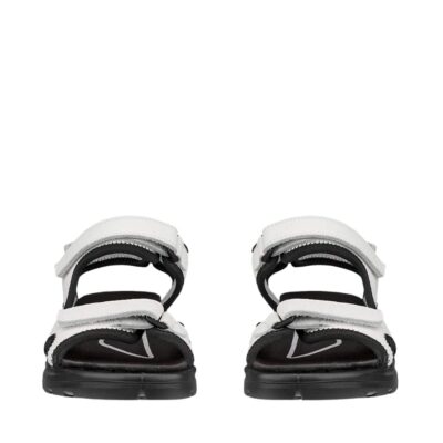 Ecco Hike sandal til dame i hvid. En let og fleksibel sandal i klassisk hvid, der kombinerer funktionalitet og elegance. Sandalen har en blød læderoverdel og tre justerbare velcroremme, som giver en perfekt pasform. Indvendigt byder den på en komfortabel indersål med Ecco Fluidform™ teknologi, der aflaster foden og sikrer støtte hele dagen. Den mønstrede ydersål giver ekstra skridsikkerhed og stabilitet ved hvert skridt.