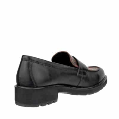 Ecco Metropole Vienna loafers til dame i sort. Stilfulde loafers i skind med en flot detalje foran, der fremhæver skoens elegante udtryk. Indvendigt er modellen udstyret med en blød skindsål med Dual-fit, der kan tages ud for at justere pasformen, så du får den bedst mulige komfort. Den chunky ydersål på ca. 4 cm giver en moderne finish, mens mønsteret på ydersålen giver øget skridsikkerhed.