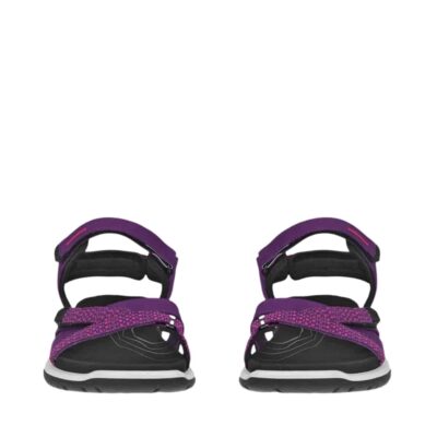 Ecco Offroad Roam sandal til dame i lilla. Nyd kombinationen af stil og komfort med denne alsidige sandal. Overdelen er lavet af blødt læder, og de tre velcroremme giver en tilpasset og behagelig pasform. Den smukt placerede krydsrem tilføjer et stilfuldt look. Ecco Fluidform™ teknologien sikrer en blød og støddæmpende indersål, der giver ekstra komfort ved hvert skridt. Med en slidstærk gummisål og Ecco Receptor® teknologi får du pålidelig støtte og stabilitet hele dagen.