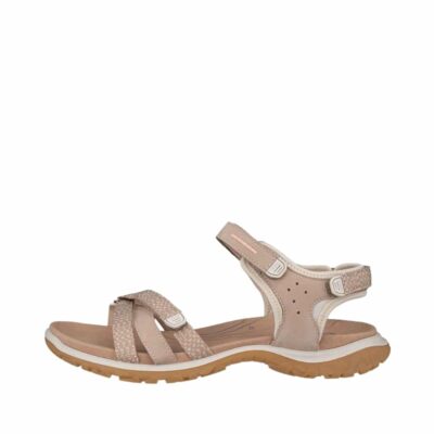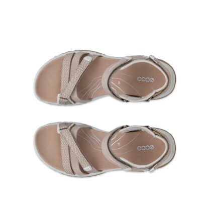 Ecco Offroad Roam sandal til dame i beige. Tag naturen i hånden med ECCO OFFROAD ROAM, en sandal designet til både byvandring og vilde stier. Overdelen er lavet af slidstærkt ECCO-læder kombineret med tekstil, som giver både komfort og holdbarhed. Sandalen har tre justerbare remme, der sikrer optimal pasform. Indvendigt sørger en blød mikrofiber-beklædt fodseng for god komfort, mens den lette sål med FLUIDFORM™ teknologi giver fleksibilitet og stødabsorbering hele dagen. Den robuste ydersål i gummi giver et solidt greb, uanset om du går på asfalt eller ujævnt terræn.
