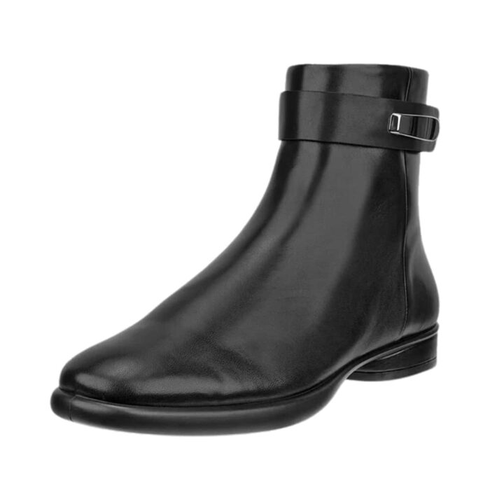 Ecco Sculpted LX støvle til dame i sort. Denne lette støvle i en moderne sort farve udstråler ren elegance med glatskinds overflade og den fine detalje på skaftet. Støvlen har også en diskret lille hæl der måler ca. 2 cm. som bidrager til en sikker gang samtidig med at den giver støvlen et ekstra touch. Modellen er udstyret med Ecco Fluidform™ teknologi som sikrer en behagelig og fleksibel pasform til hvert skridt du tager. Desuden har støvlen en unik mulighed for at tage to såler ud, alt efter om du ønsker en bred eller normal pasform. På indersiden er støvlen er der en funktionel lynlås der gør det hurtigt og nemt at tage støvlen af og på.
