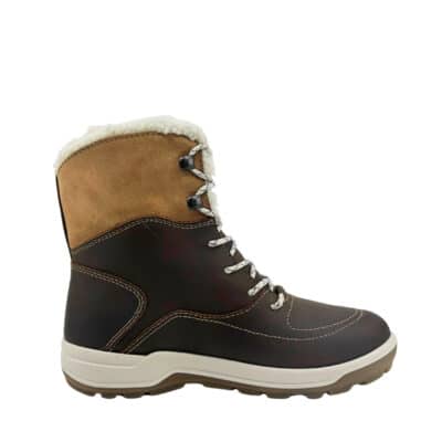 Ecco Trace Lite støvle til dame i mørkebrun. En flot vinterstøvle i nubucklæder med moderne detaljer for både funktionalitet og stil. Snørebåndene foran gør det let at justere pasformen, og indvendigt finder du en udtagelig sål og en varm uldforing, som giver komfort og holder fødderne varme dagen igennem. Med Ecco’s Waterproof teknologi får du 100% vandtæthed, så fødderne forbliver tørre. Takket være Ecco Fluidform™ får du en fleksibel sål, der følger fodens bevægelser, mens den mønstrede ydersål giver øget skridsikkerhed.
