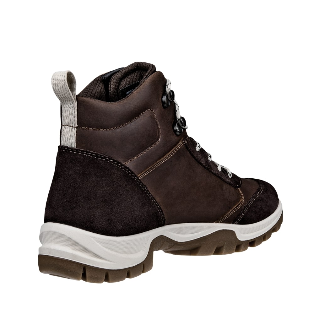 Ecco Xpedition III W støvle til dame i mørkebrun. Denne mørkebrune læderstøvle er et perfekt valg til dig, der ønsker både stil og funktionalitet. Støvlen har snørebånd foran, så pasformen nemt kan tilpasses, og det er enkelt at tage den på og af. Indvendigt finder du en behagelig tekstilforing samt en udtagelig filtsål, der giver blød komfort gennem hele dagen. Ecco’s Waterproof membran gør støvlen vandtæt, så fødderne holdes tørre, mens den solide gummisål med mønster giver skridsikkerhed. Med Ecco Receptor® teknologien får du samtidig fleksibilitet og effektiv stødabsorbering.