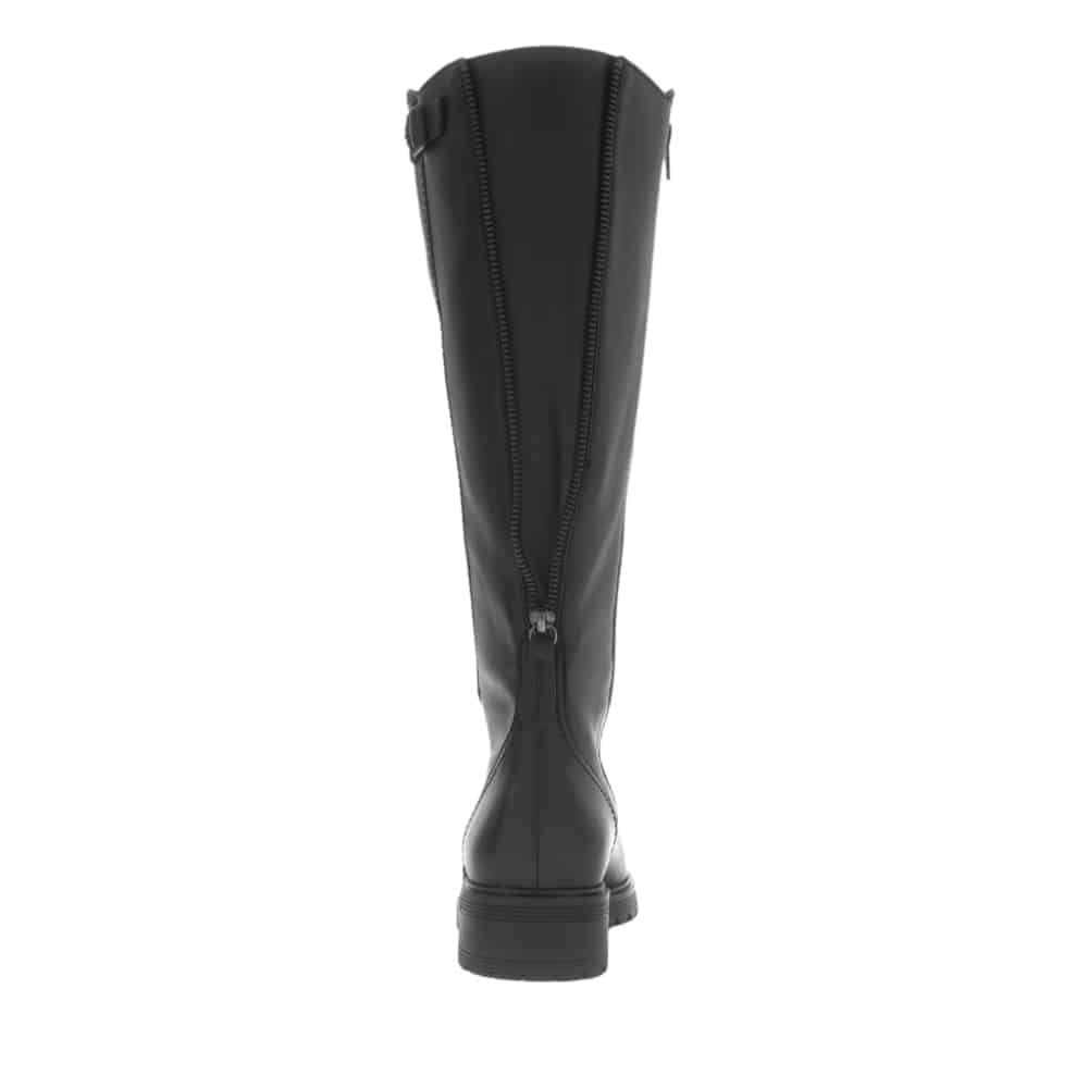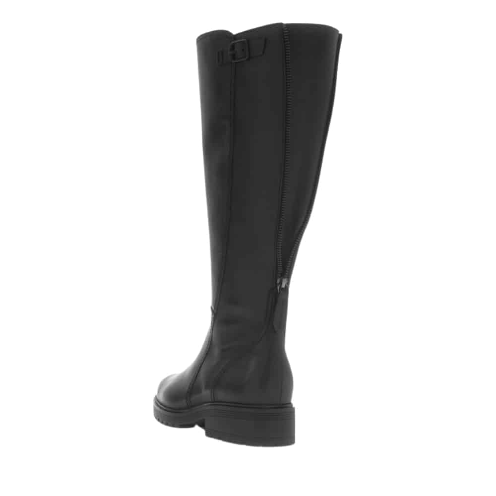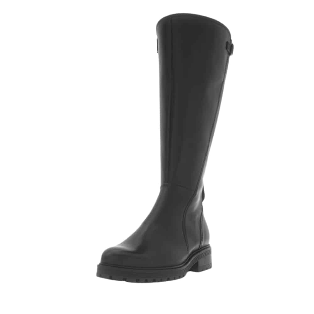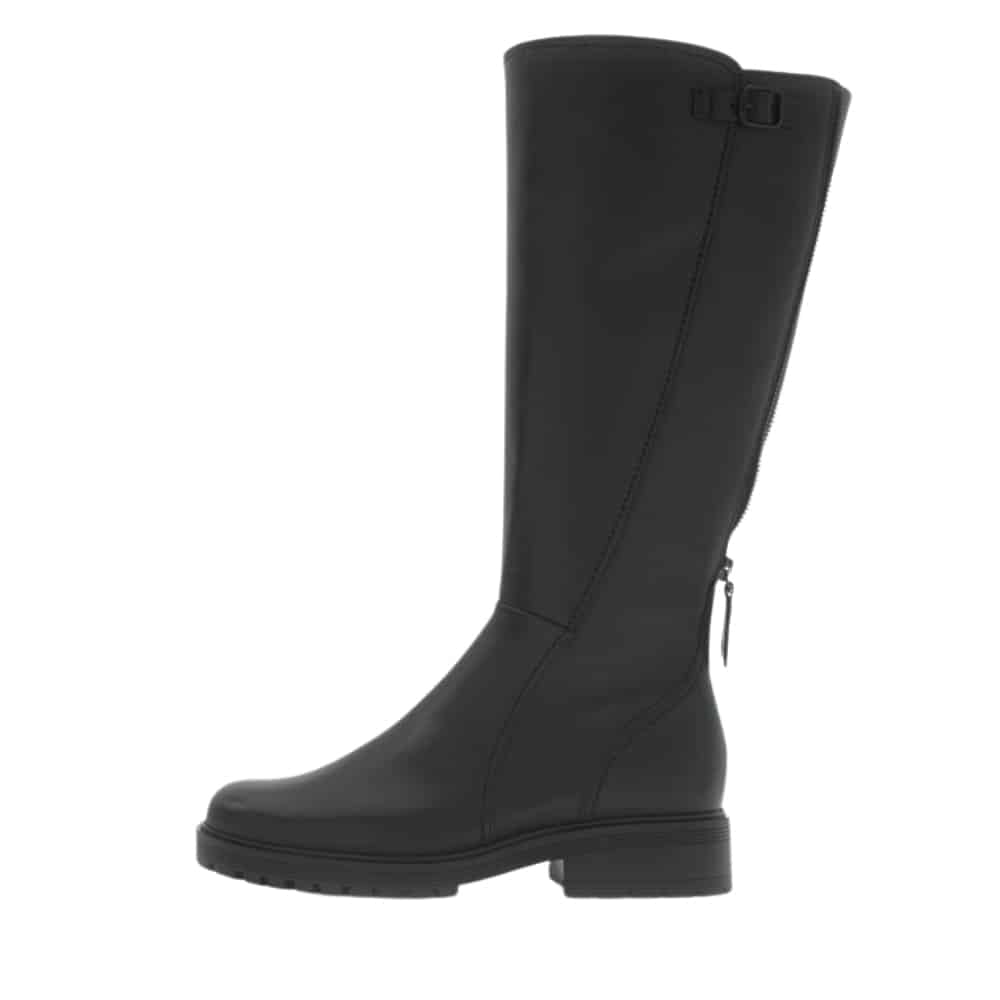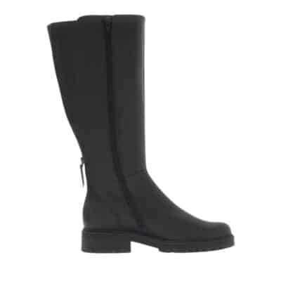 Gabor lang støvle til dame i sort. Denne elegante støvle i skind er designet med et klassisk og tidløst udtryk. Bagpå har støvlen en funktionel lynlås, som både pynter og giver mulighed for en mere rummelig paform. På indersiden finder du endnu en lynlås, der gør det enkelt at tage støvlen af og på. Indvendigt er modellen udstyret med en blød udtagelig sål, som giver en behagelig komfort hele dagen. Den mønstrede ydersål giver øget skridsikkerhed.