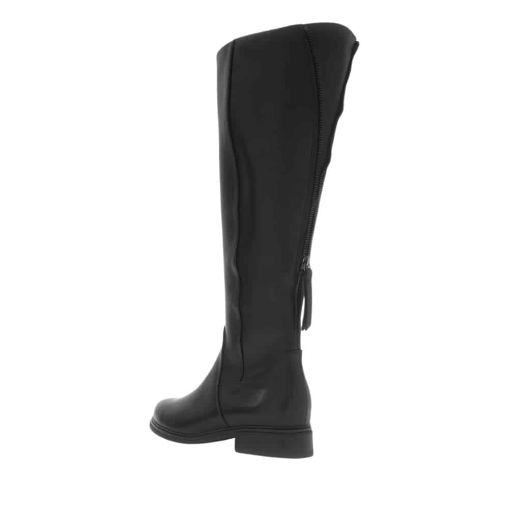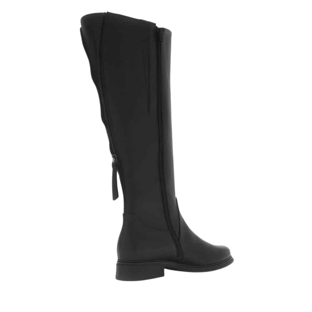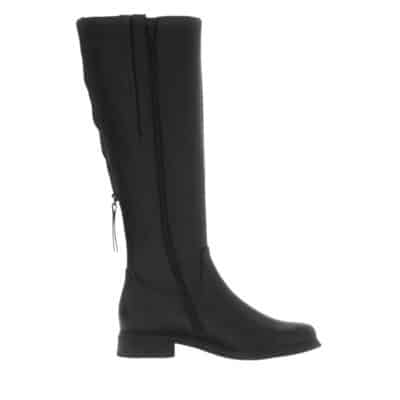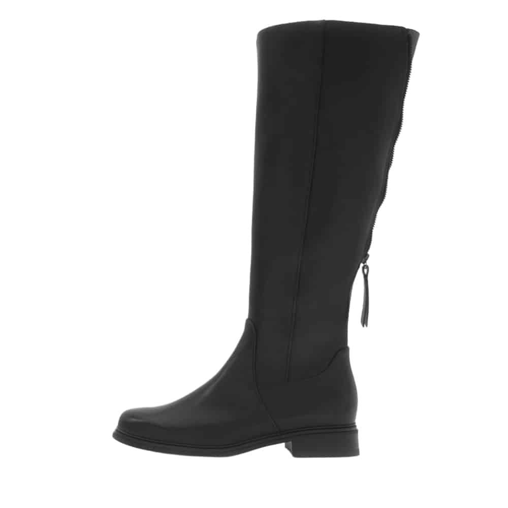 Gabor lang støvle til dame i sort. Sort støvle i et klassisk og elegant design med skindoverdel, der sikrer et stilfuldt udtryk. Bagpå er støvlen udstyret med en funktionel lynlås, som giver et flot touch, mens skaftvidde L giver en mere rummelig pasform. En lynlås på indersiden gør det nemt at tage støvlen på. Indvendigt mødes du af en blød udtagelig sål, der giver komfort hele dagen, mens den mønstrede ydersål giver øget skridsikkerhed.