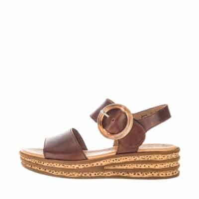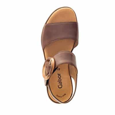 Gabor sandal til dame i brun. Smuk sandal fra Gabor i en flot brun farvenuance med en smuk spændedetalje, der giver sandalen et elegant look. Sandalen er udstyret med en praktisk velcro-rem, så du nemt kan justere den efter behov samt hurtigt komme i/af den. Modellen har en flot kilehæl på ca. 4,5 cm., der bidrager til ekstra komfort. Sandalen er lavet i bløde skindmaterialer, så du opnår kontinuerlig komfort dagen lang.