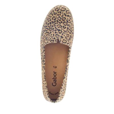 Gabor sko til dame i leopard. Elegant sko i et stilfuldt leopardprint, der skaber et unikt look. Skoen er fremstillet af 100% skind, som sikrer en blød og behagelig oplevelse hele dagen. Det lille slids foran giver en fleksibel pasform, mens den firkantede hæl tilføjer et sofistikeret touch. Indvendigt sørger den bløde skindsål for høj komfort, og den skridsikre ydersål giver ekstra stabilitet og støtte på alle underlag.