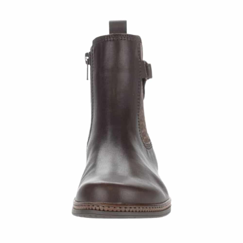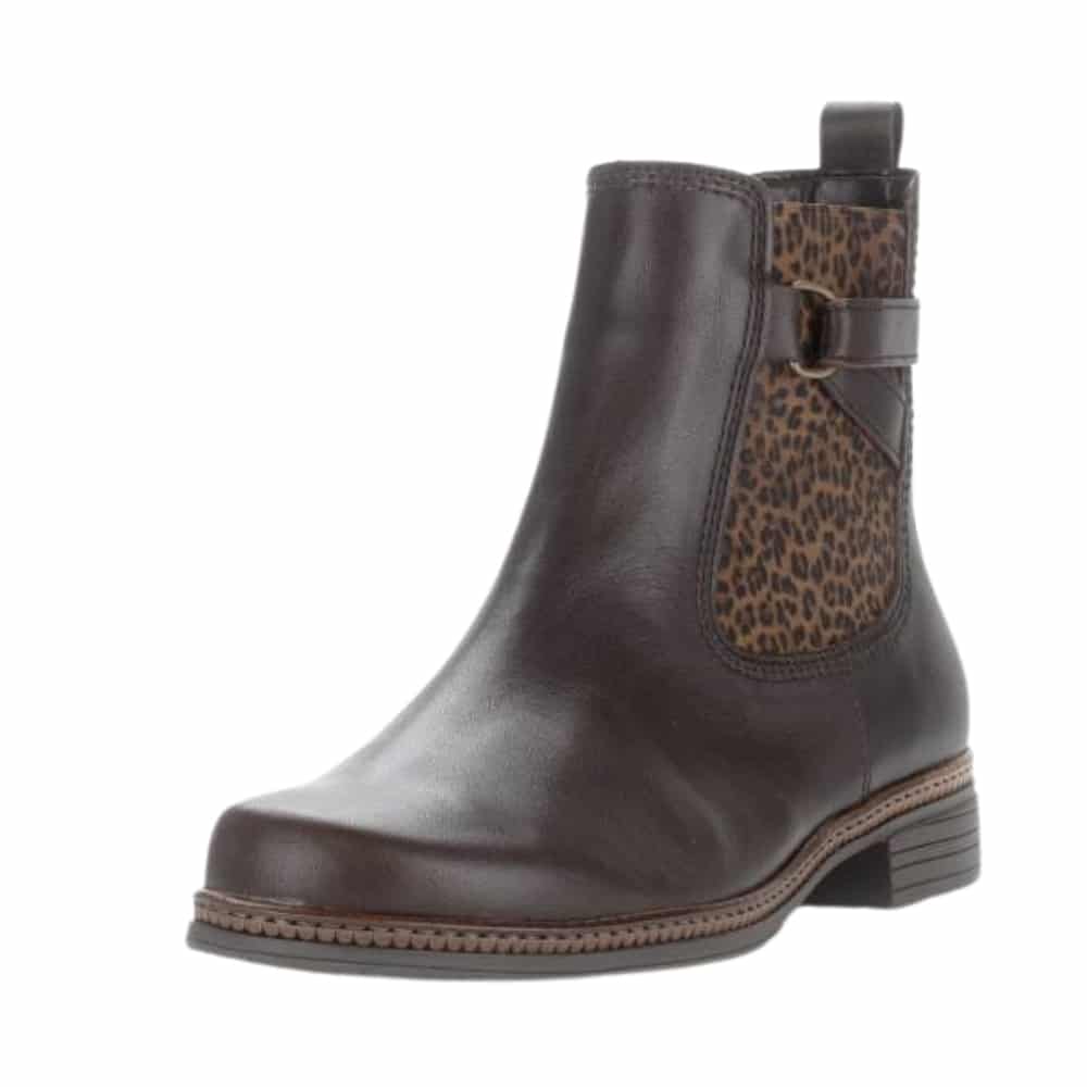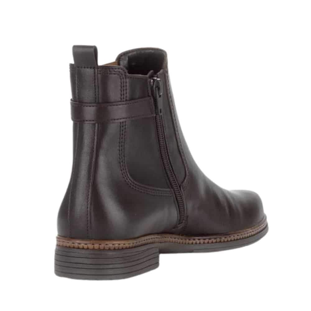 Gabor støvle til dame i mørkebrun. Elegant støvle i mørkebrunt skind, der både passer til hverdagsbrug og finere anledninger. Modellen har en funktionel lynlås, som gør støvlen hurtig og enkel at tage på. Indvendigt er støvlen udstyret med en blød udtagelig sål, der giver en behagelig komfort dagen igennem. Den mønstrede ydersål giver øget skridsikkerhed.